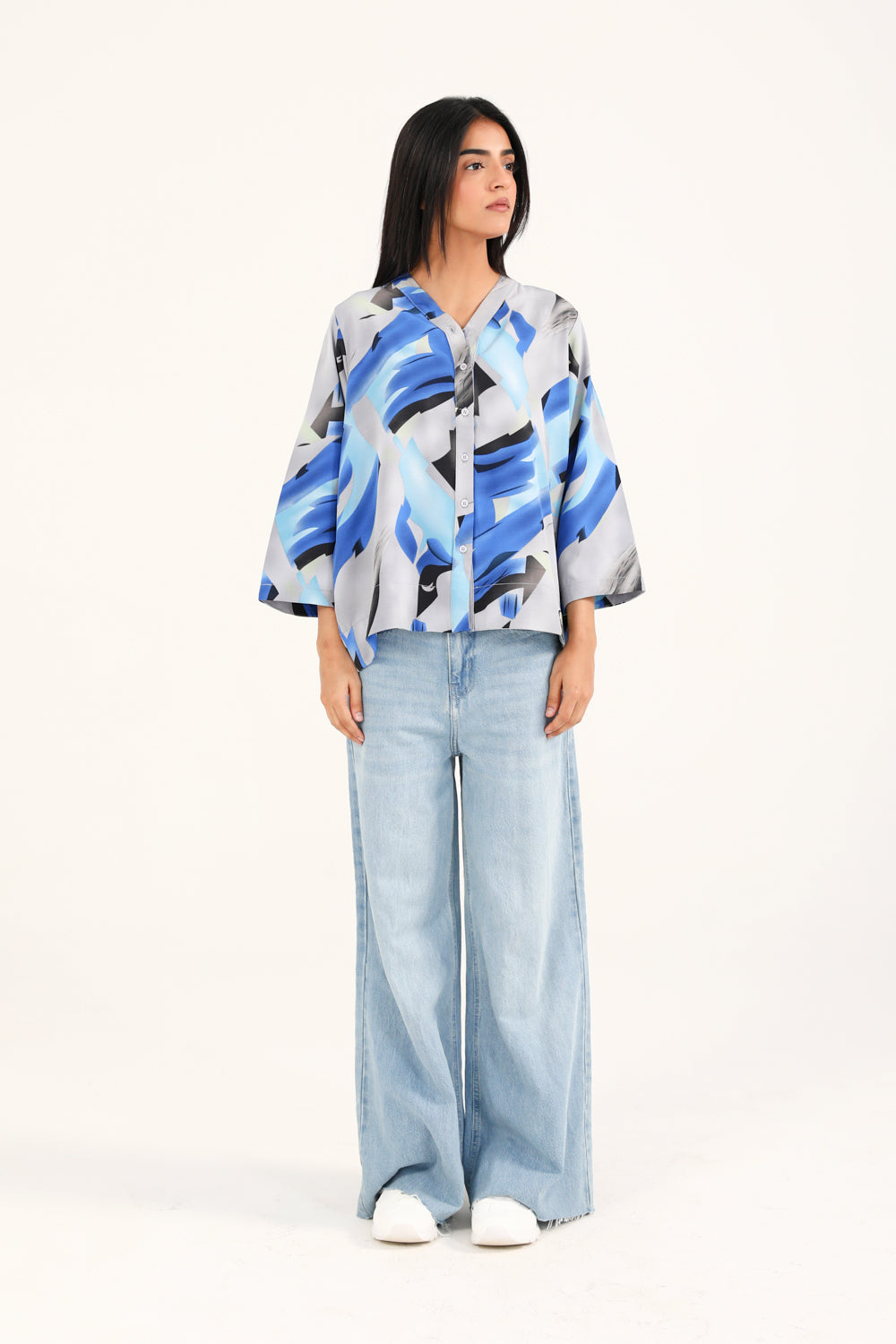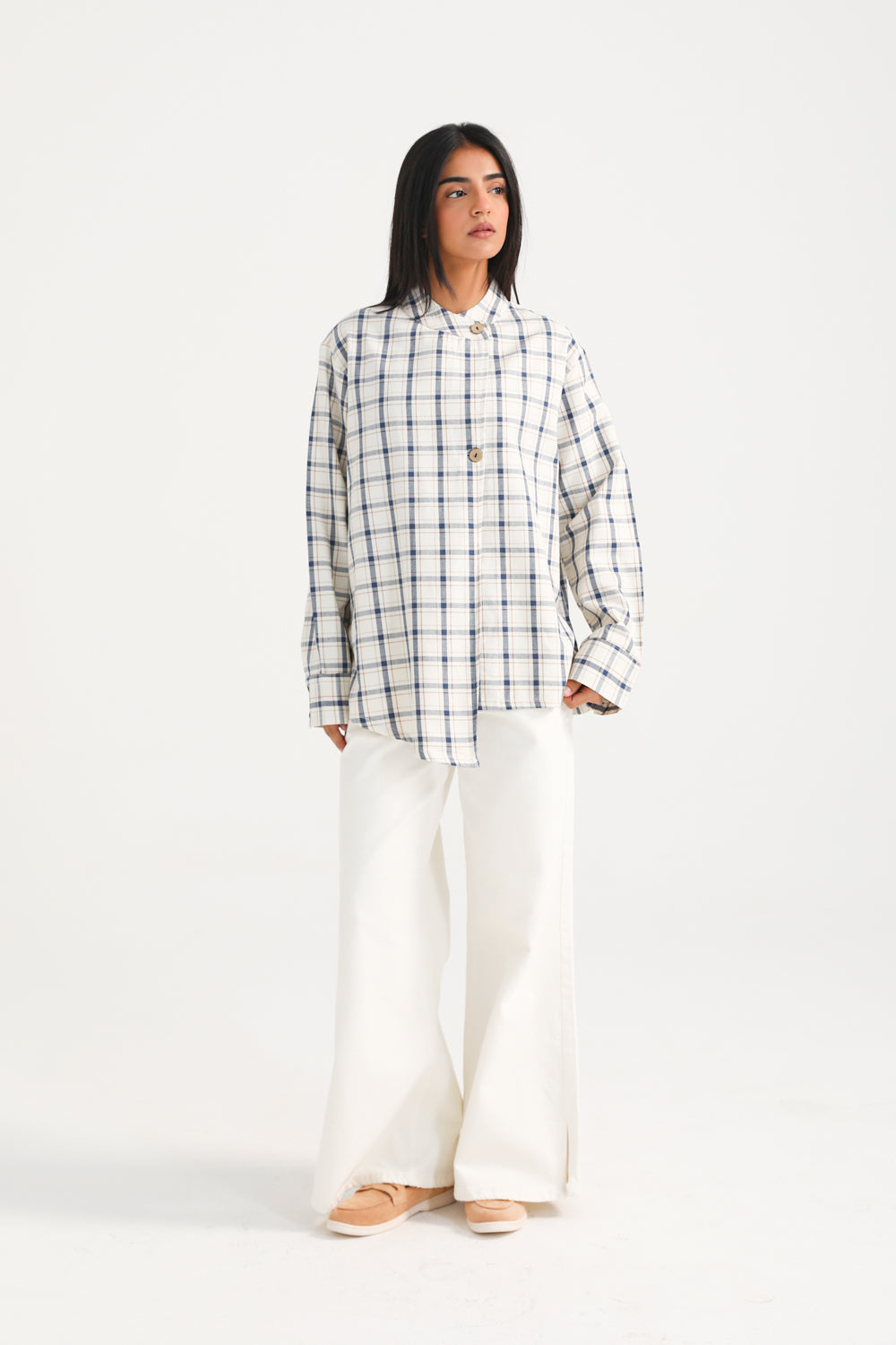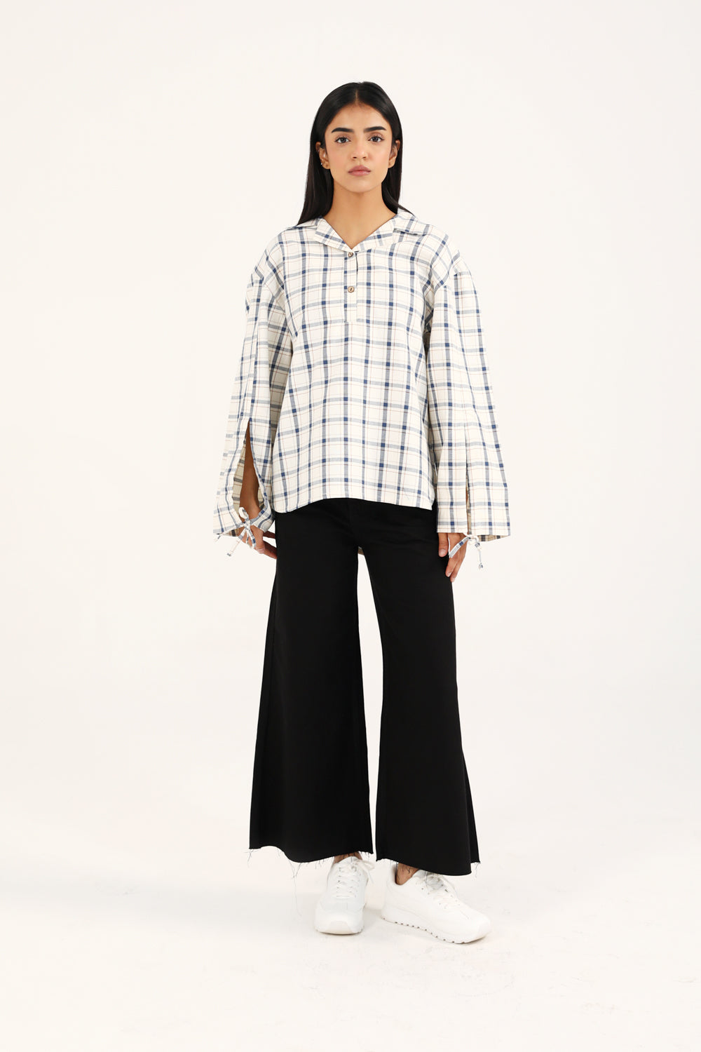 CHECKERED TOP WITH OVERLAPPED PLACKET