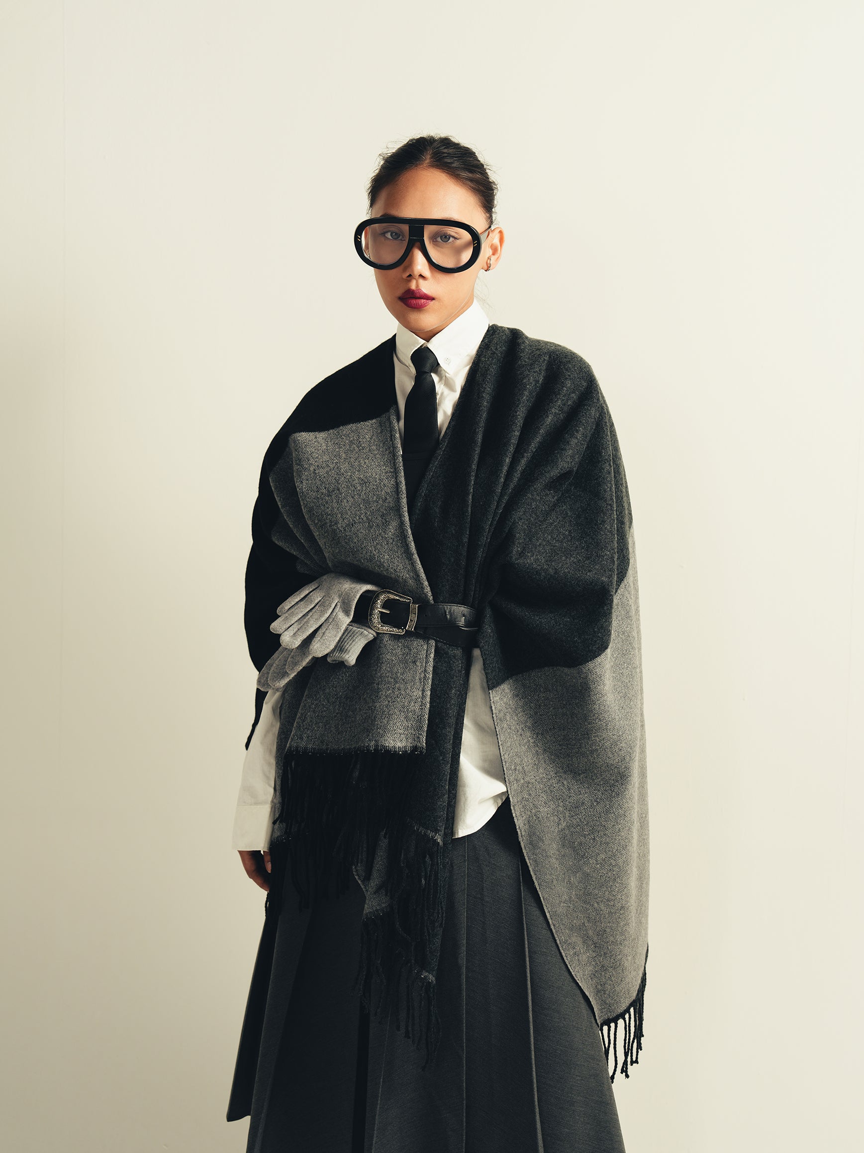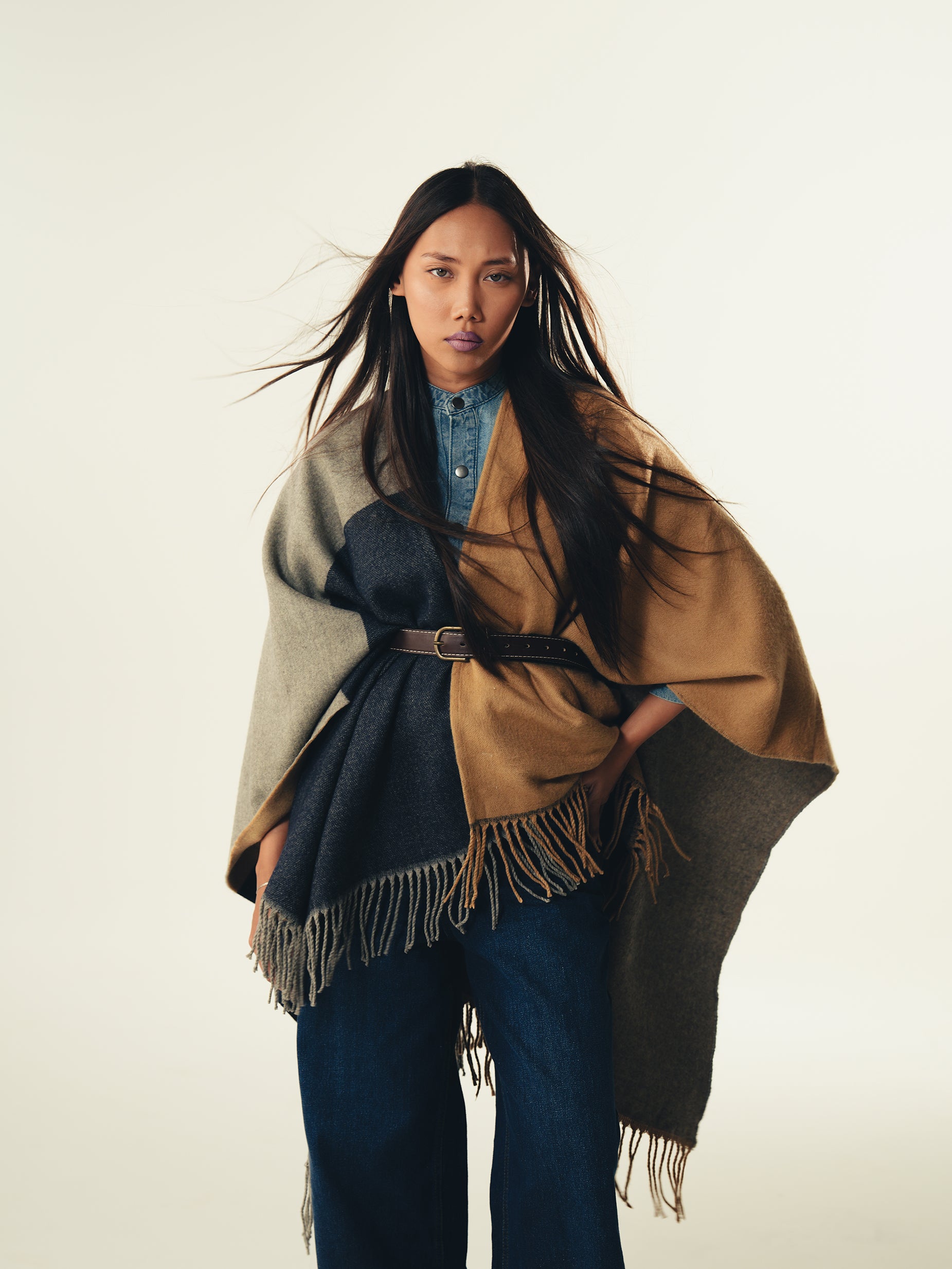 CAPE SHAWL WITH CONTRASTING DETAIL