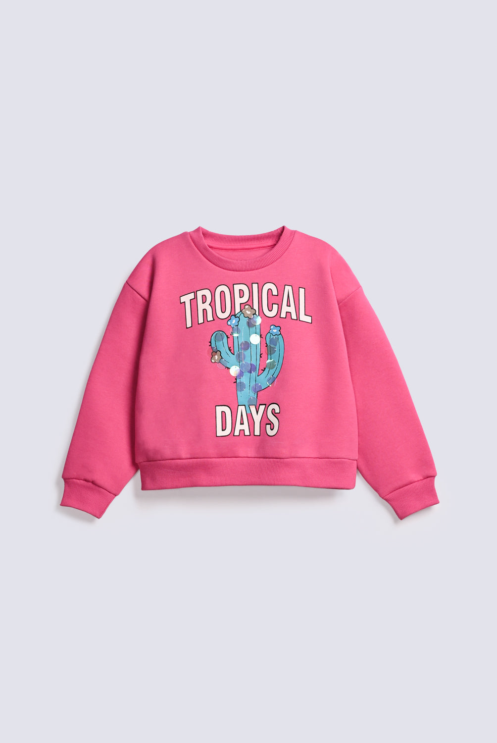 GIRLS DROP SHOULDER EMBELLISHED SWEATSHIRT