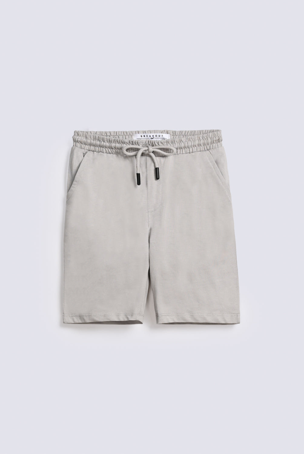 Ash grey shorts with a clean look and an elastic drawstring waist for comfort.