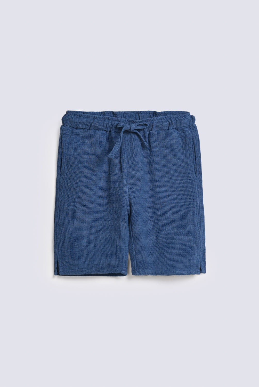 Blue textured shorts with a simple design and an elastic drawstring waist that makes getting ready easy.