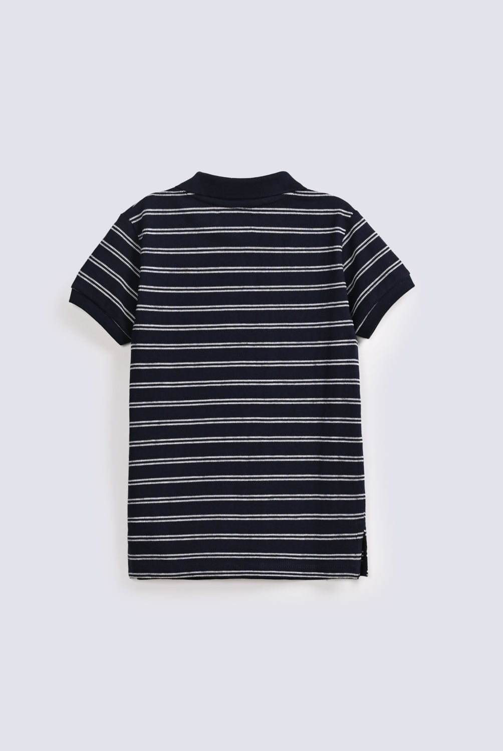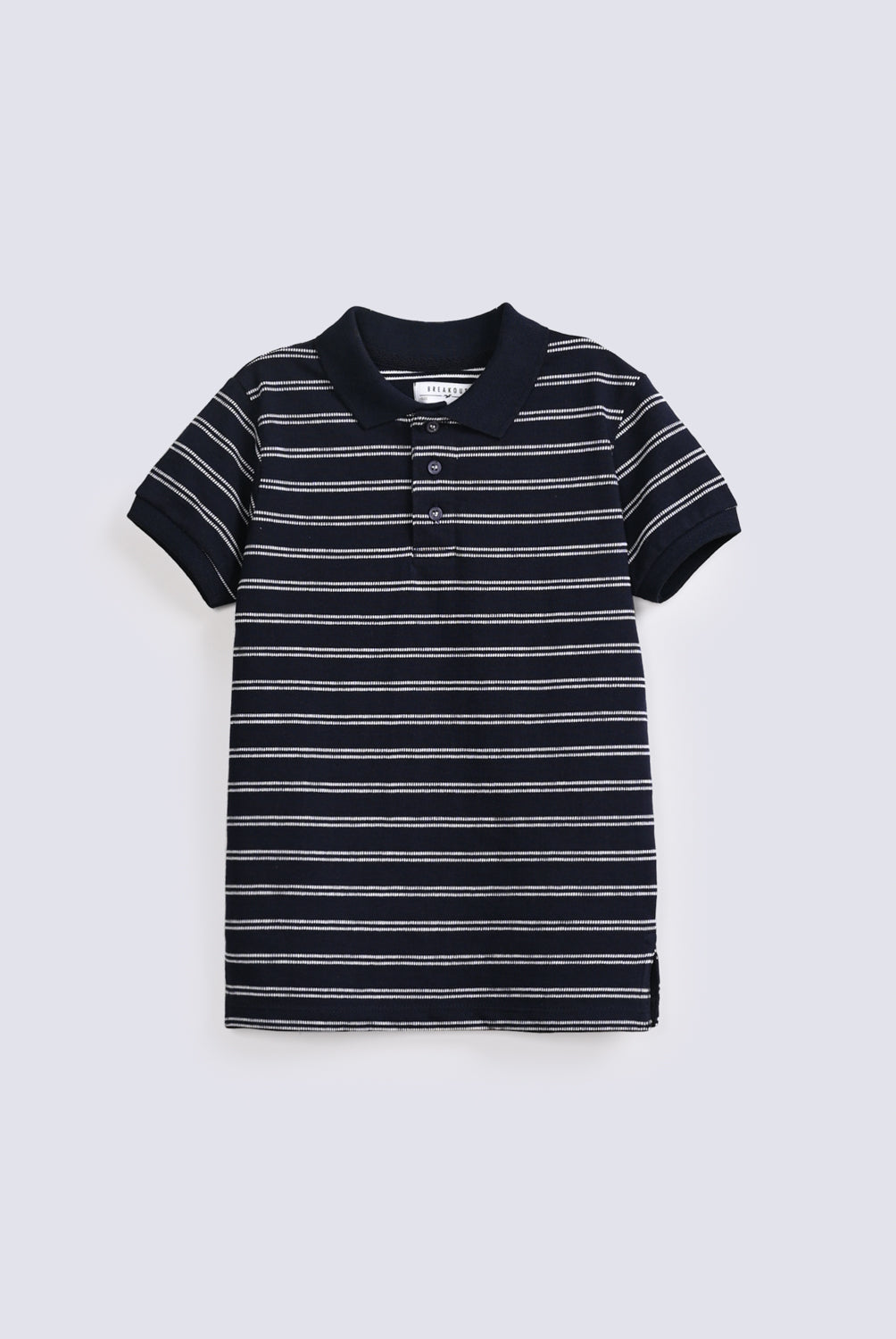 Navy and white stripes with neat matching buttons, giving it a cool nautical look.