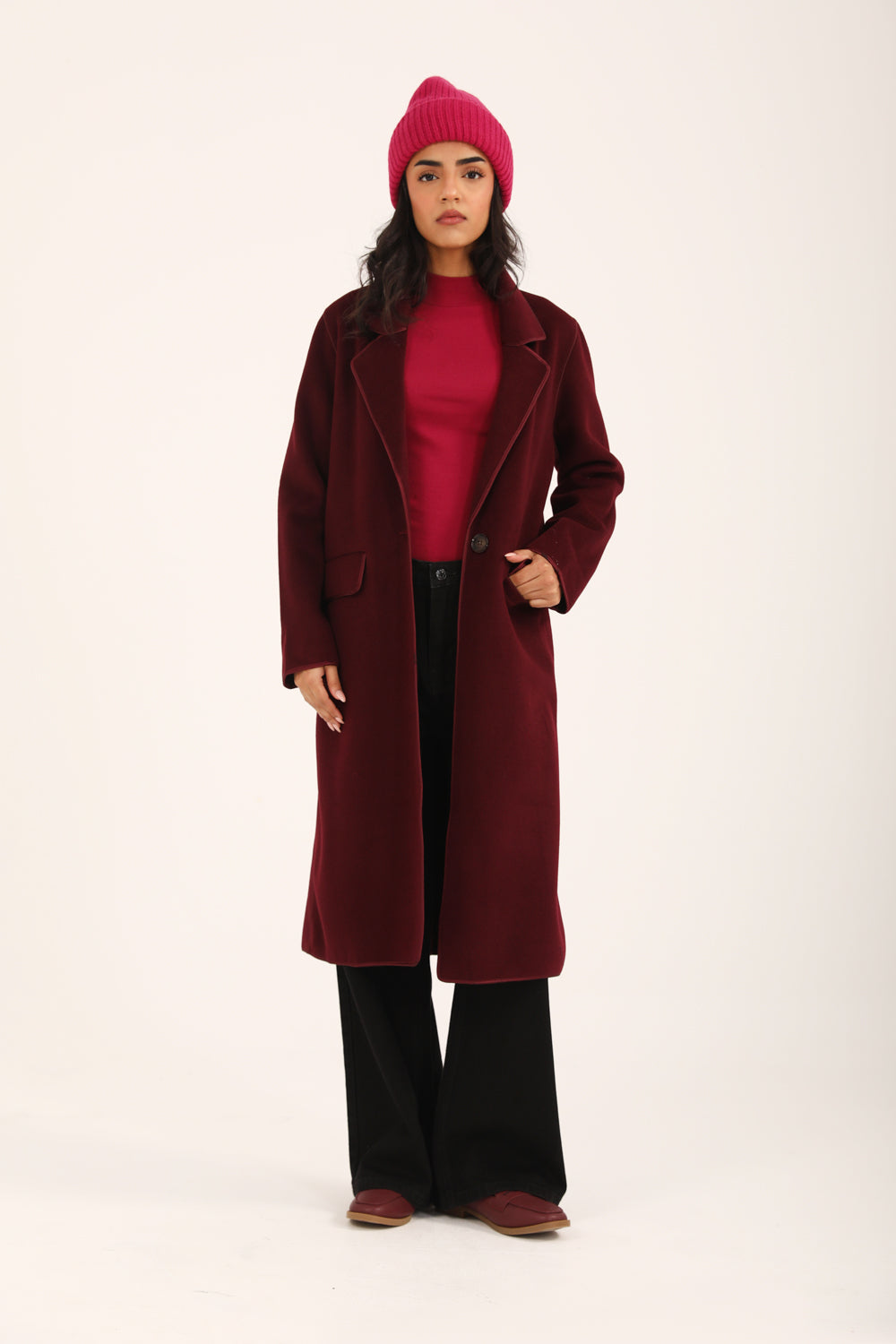 FAUX SUEDE COAT WITH SATIN TIPPING