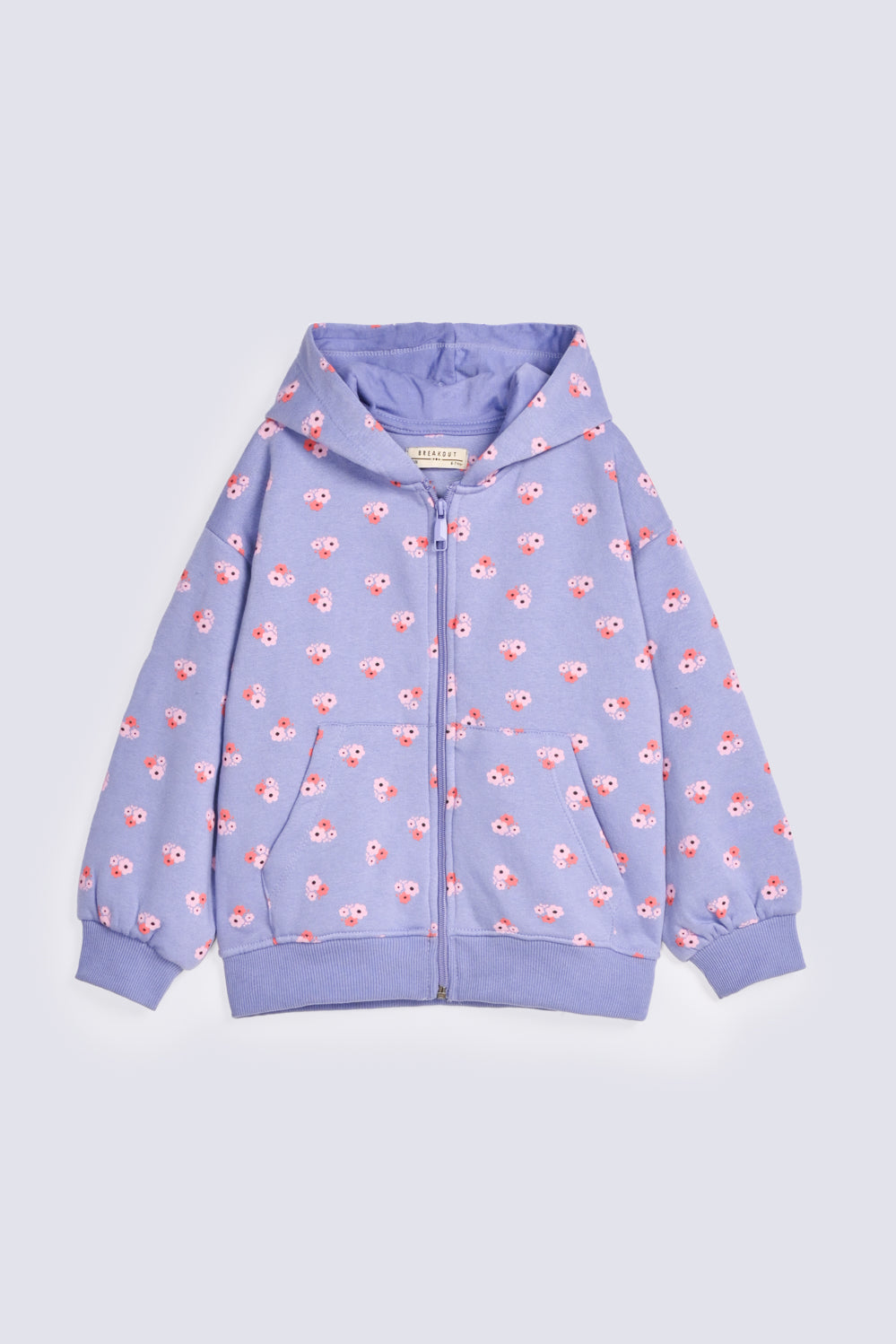 GIRLS FLORAL ZIPPER HOODED TOP