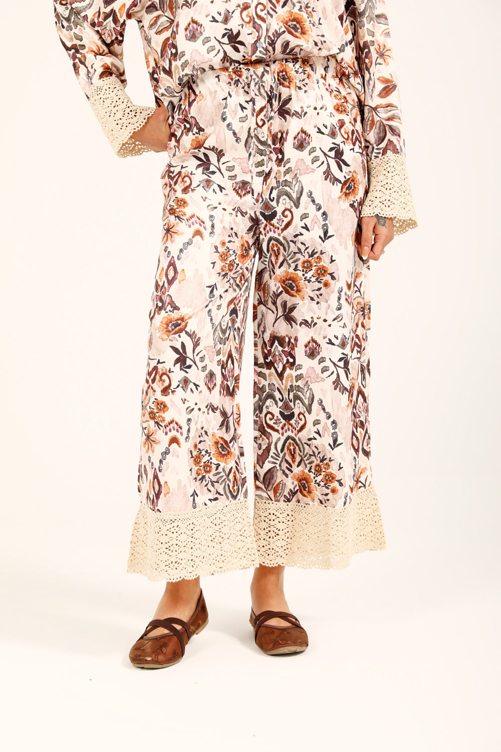 WIDE LEG PANTS WITH CROCHET DETAIL