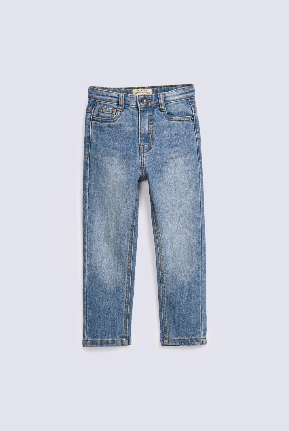 Blue denim in a regular fit with a vintage wash and yellow stitching for a classic look that never goes out of style.