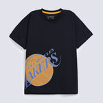 Navy tee with a loose drop shoulder fit and a big LA Lakers print on the front, made for little sports fans.