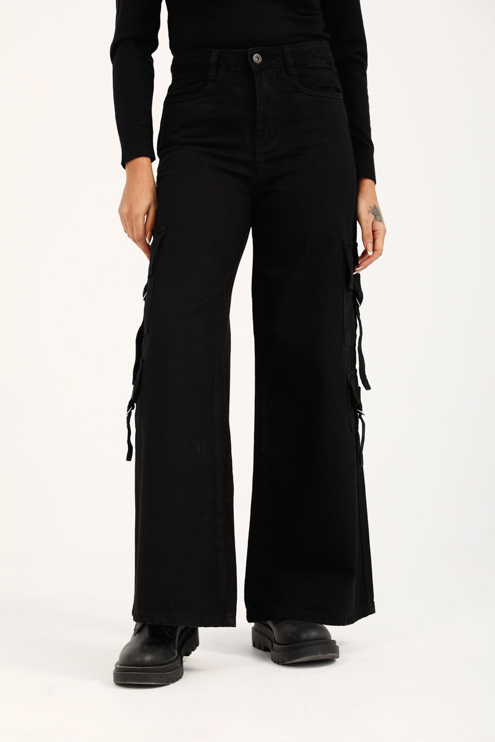 MEGA WIDE DENIM WITH STUDS DETAIL