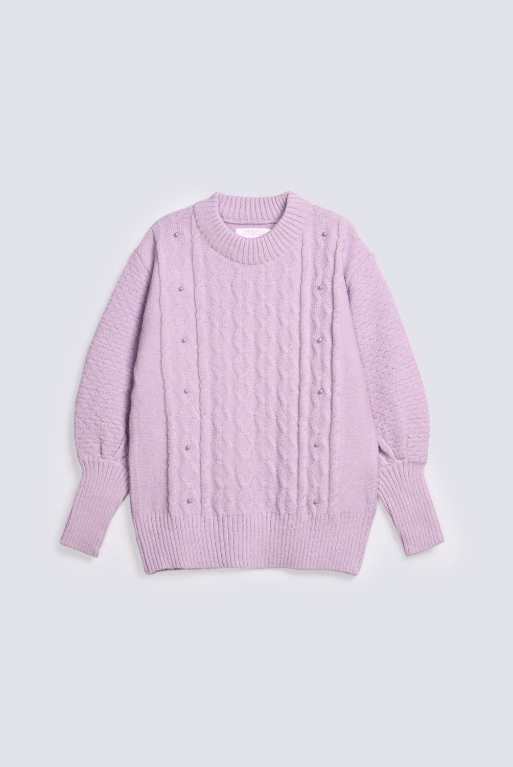GIRLS CABLE KNIT SWEATER WITH PEARLS