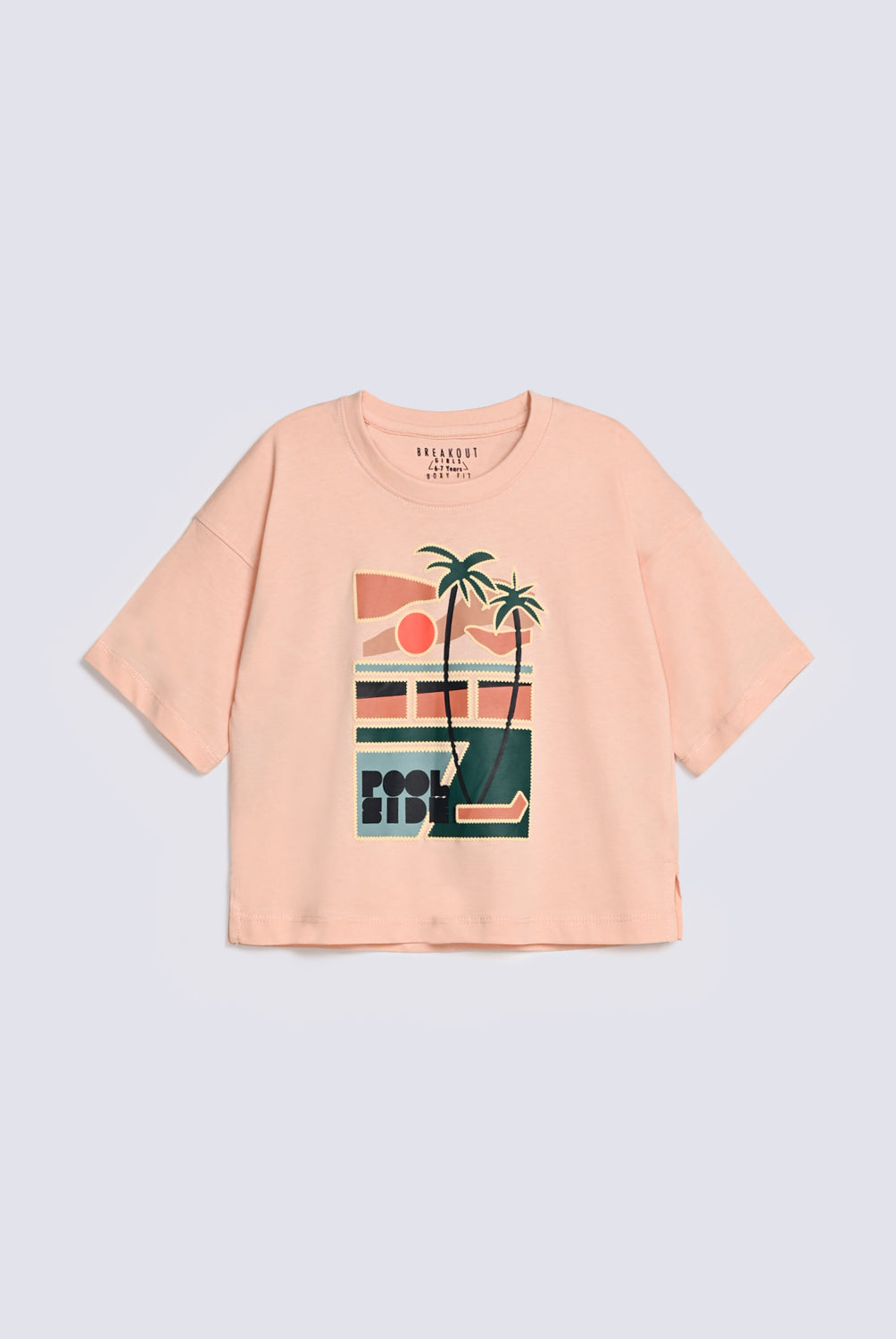 GIRLS BOXY FIT TROPICAL PRINTED T-SHIRT