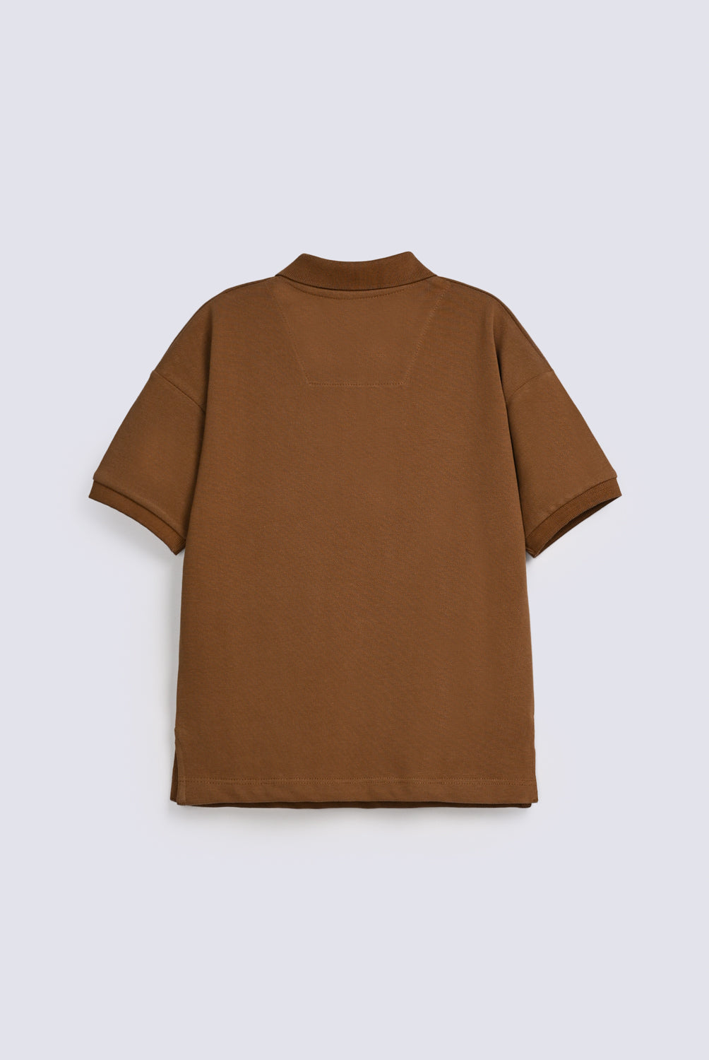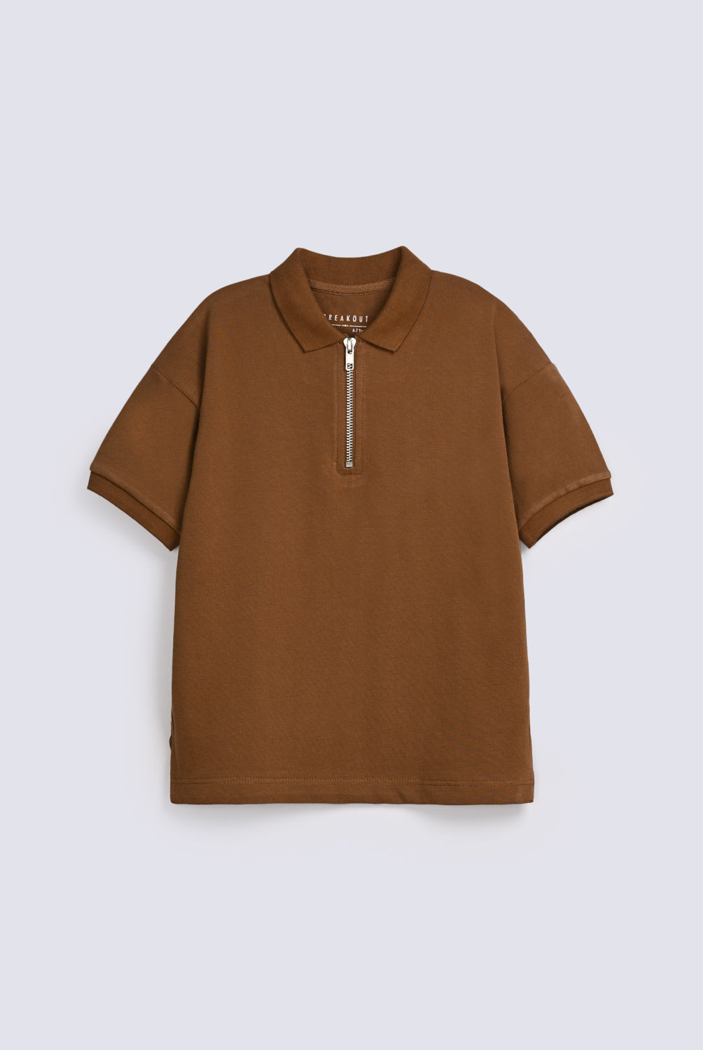 Brown drop shoulder polo with a neat zip at the neck for an easy, kid friendly twist on a classic style.