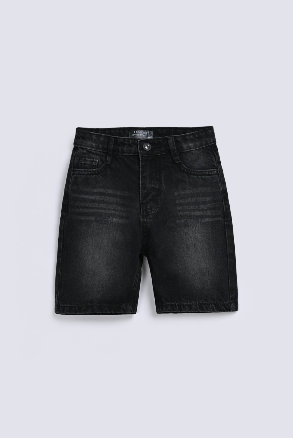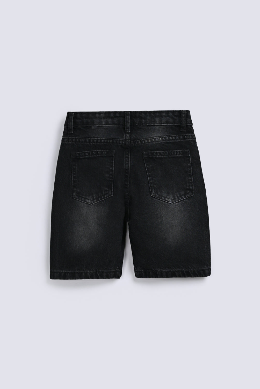 Black denim shorts with a laid-back ripped finish, giving them an effortlessly cool edge.