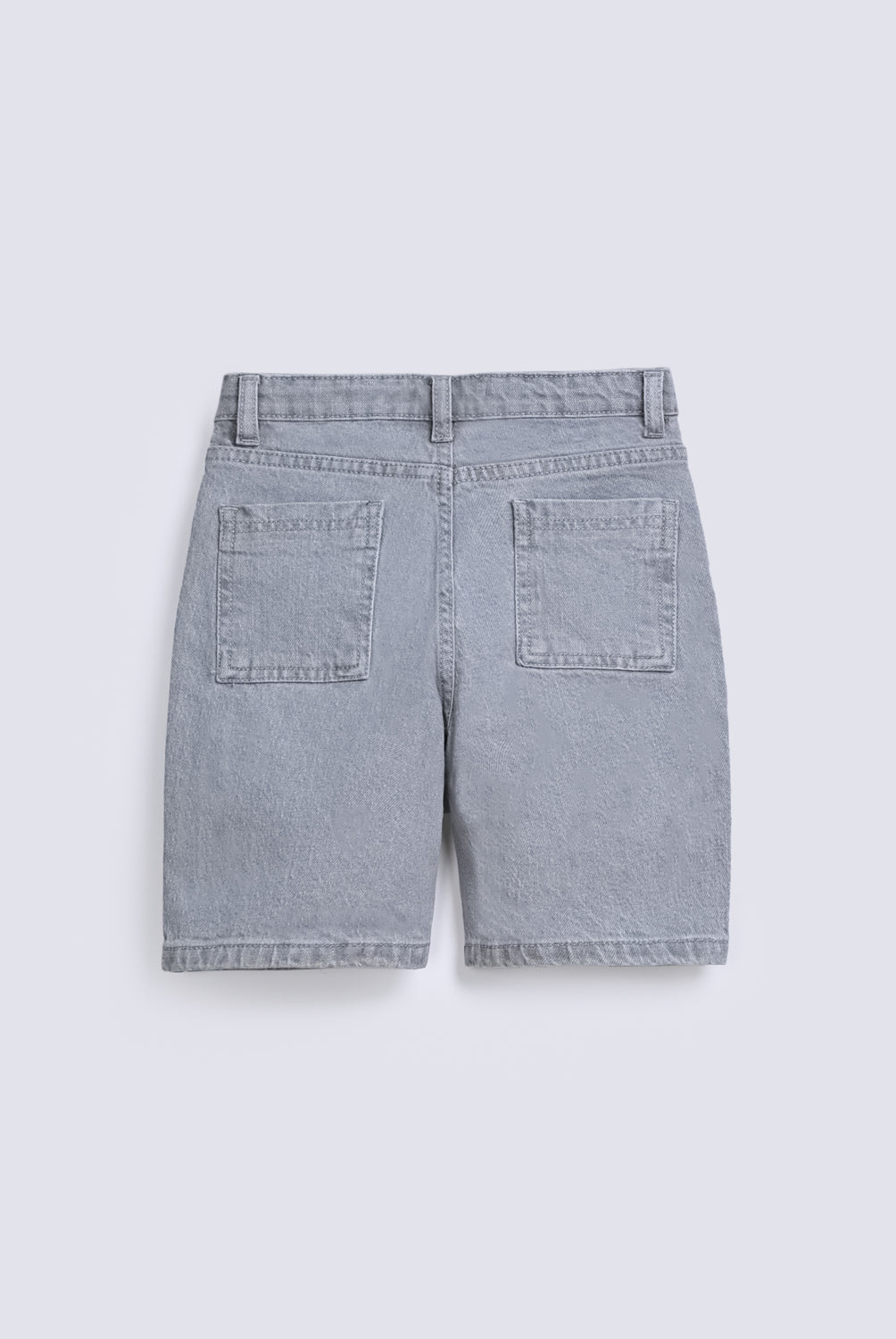 A clean light grey shade gives these denim shorts a cool and versatile look.