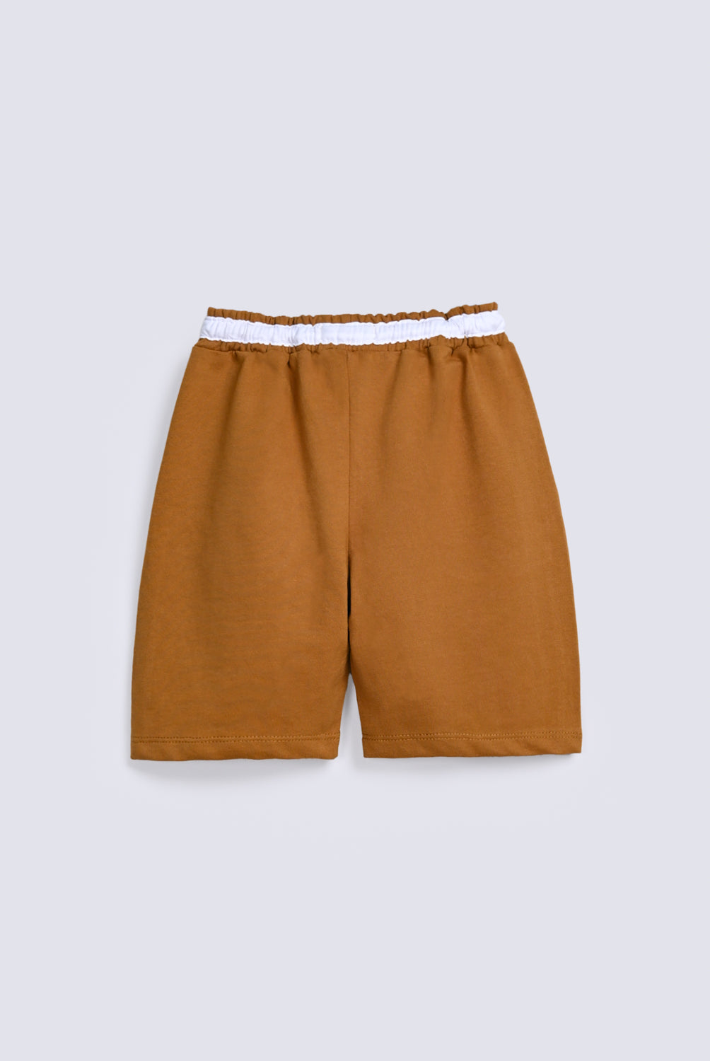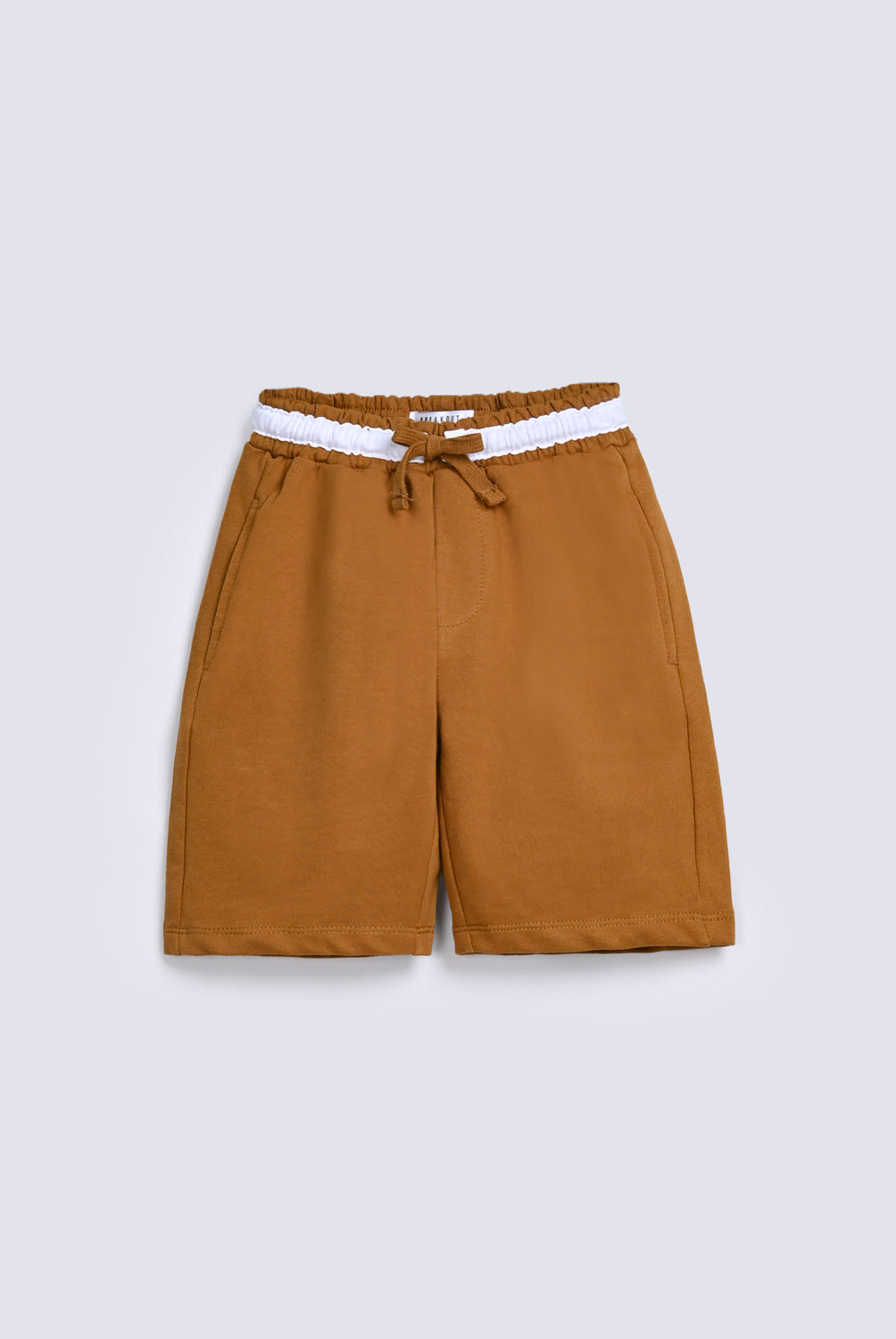 These cotton shorts are finished in a bold mustard tone with a crisp white waistband tie for a striking contrast.