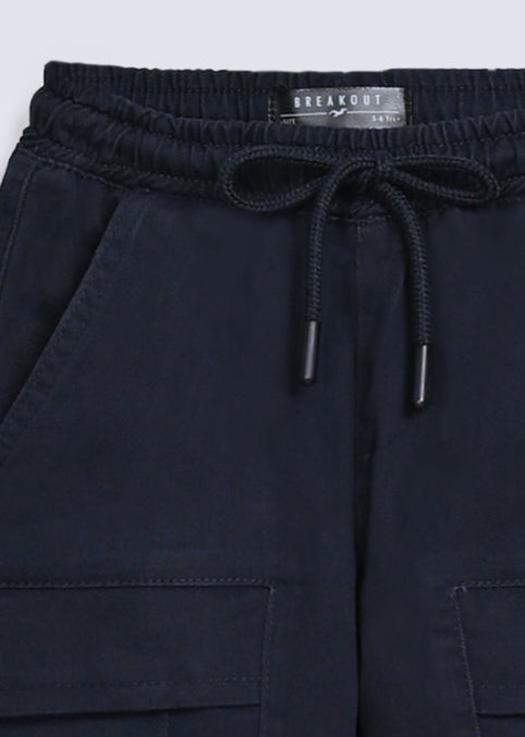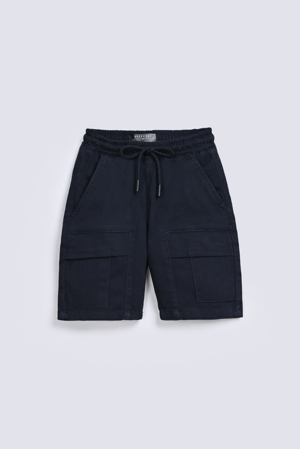 Cotton shorts with an elasticated drawstring waistband and front flap details on each side.