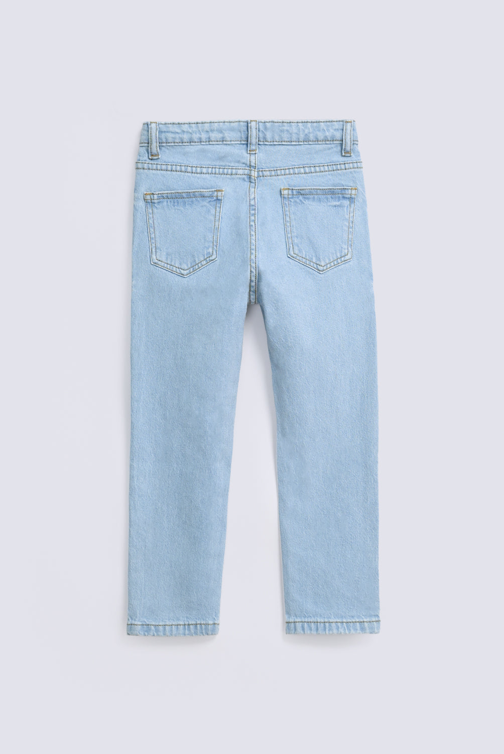Light blue denim with a straight cut and classic stitching, built for a clean look.