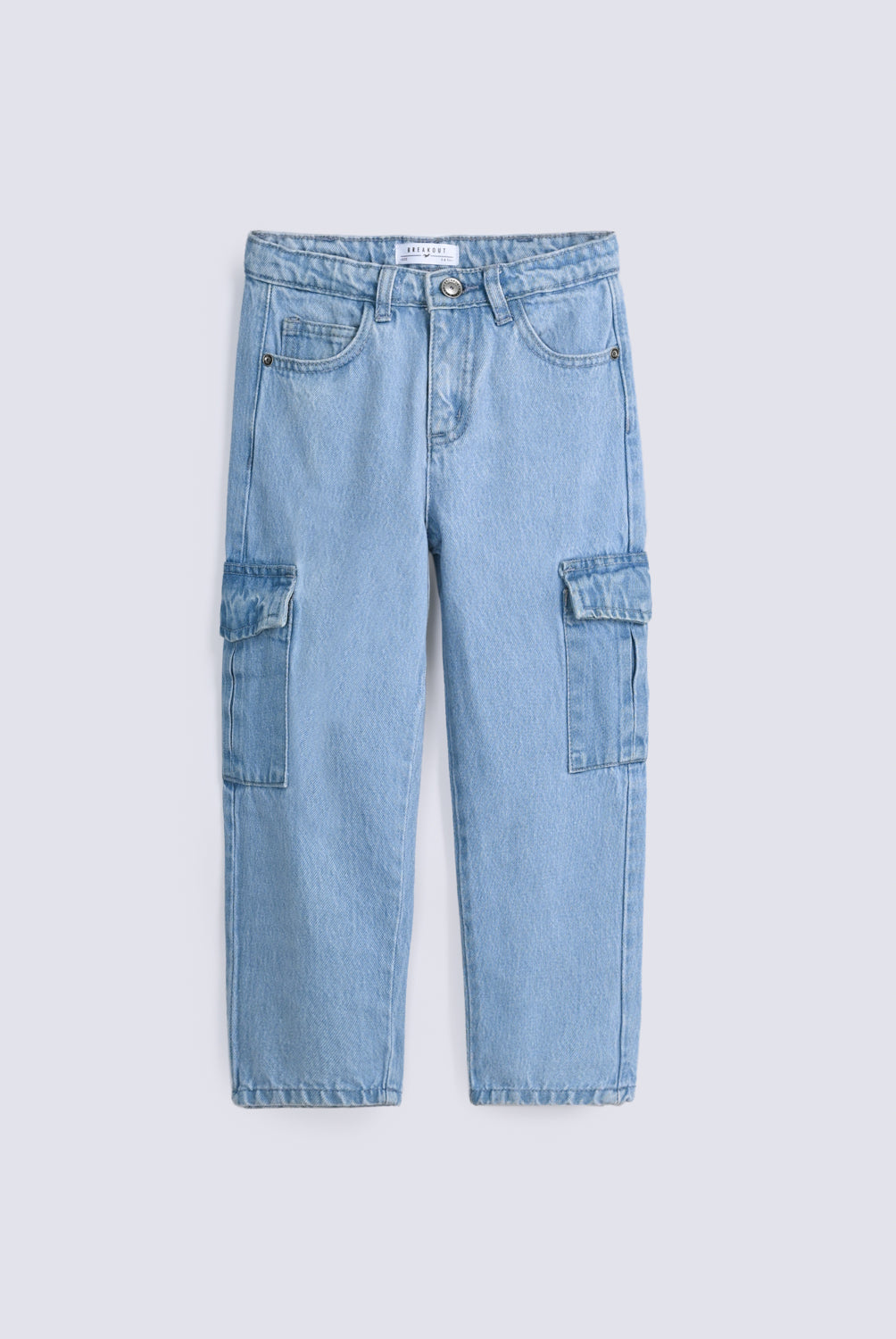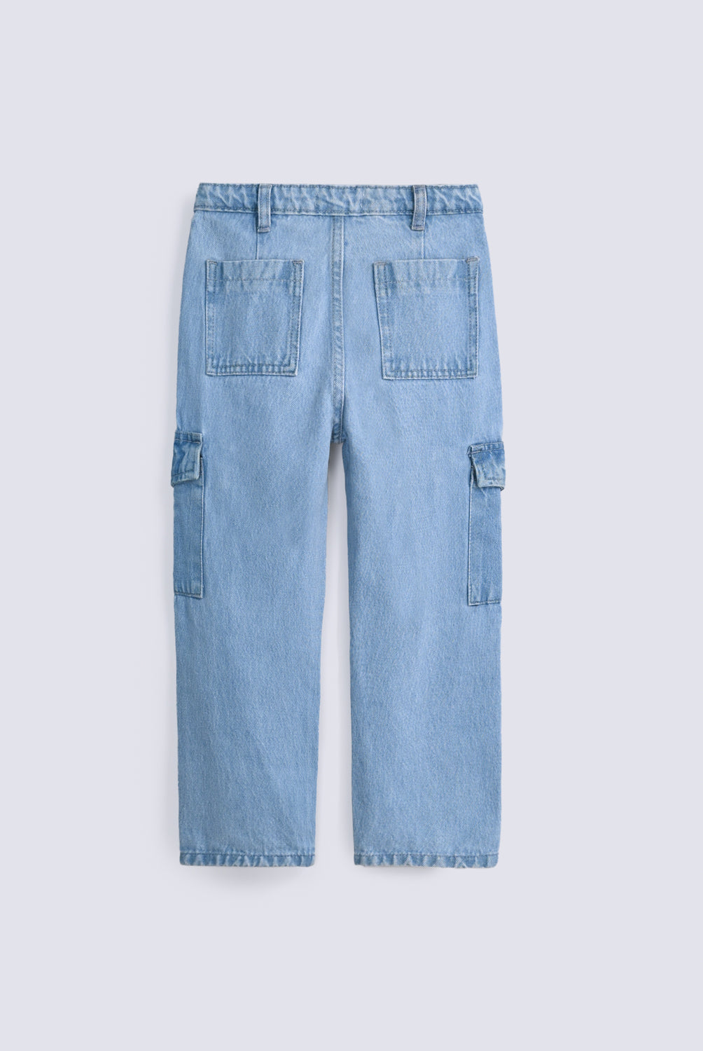 In classic blue denim with a roomy fit, this pair features oversized cargo pockets that are big on both style and storage.
