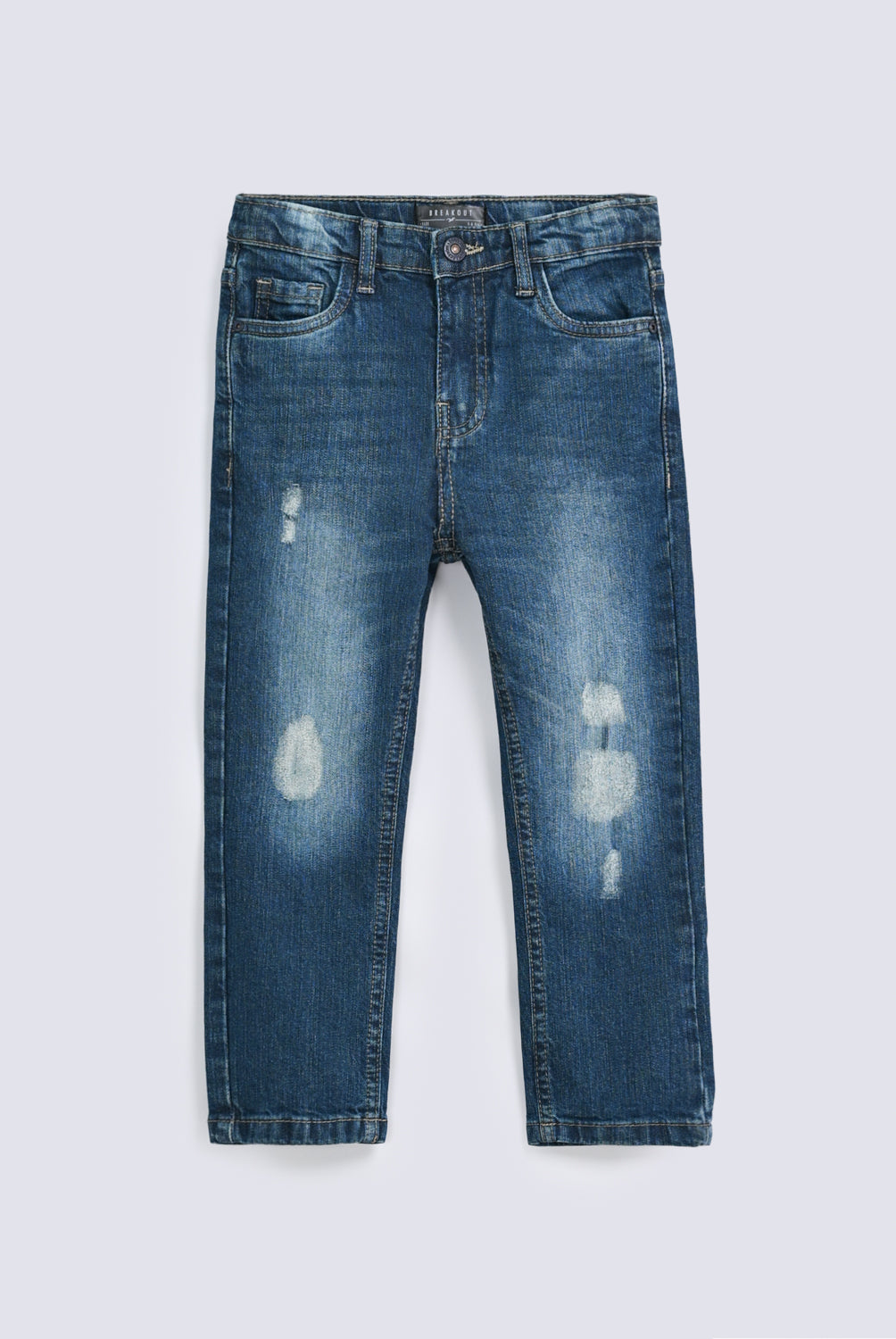 Classic blue denim with a regular fit and cool little rips that give it a laid back, worn in feel.