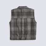 A sleeveless button-down in classic black and grey checks, finished with matching buttons for a neat look.