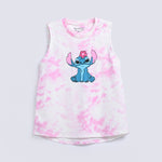 Sleeveless cotton top with a Stitch graphic on the front, finished in a pink and white tie and dye for a fun burst of color.