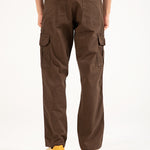 Made from a cotton synthetic blend, this dark brown trouser comes with a straight fit and two roomy cargo pockets.