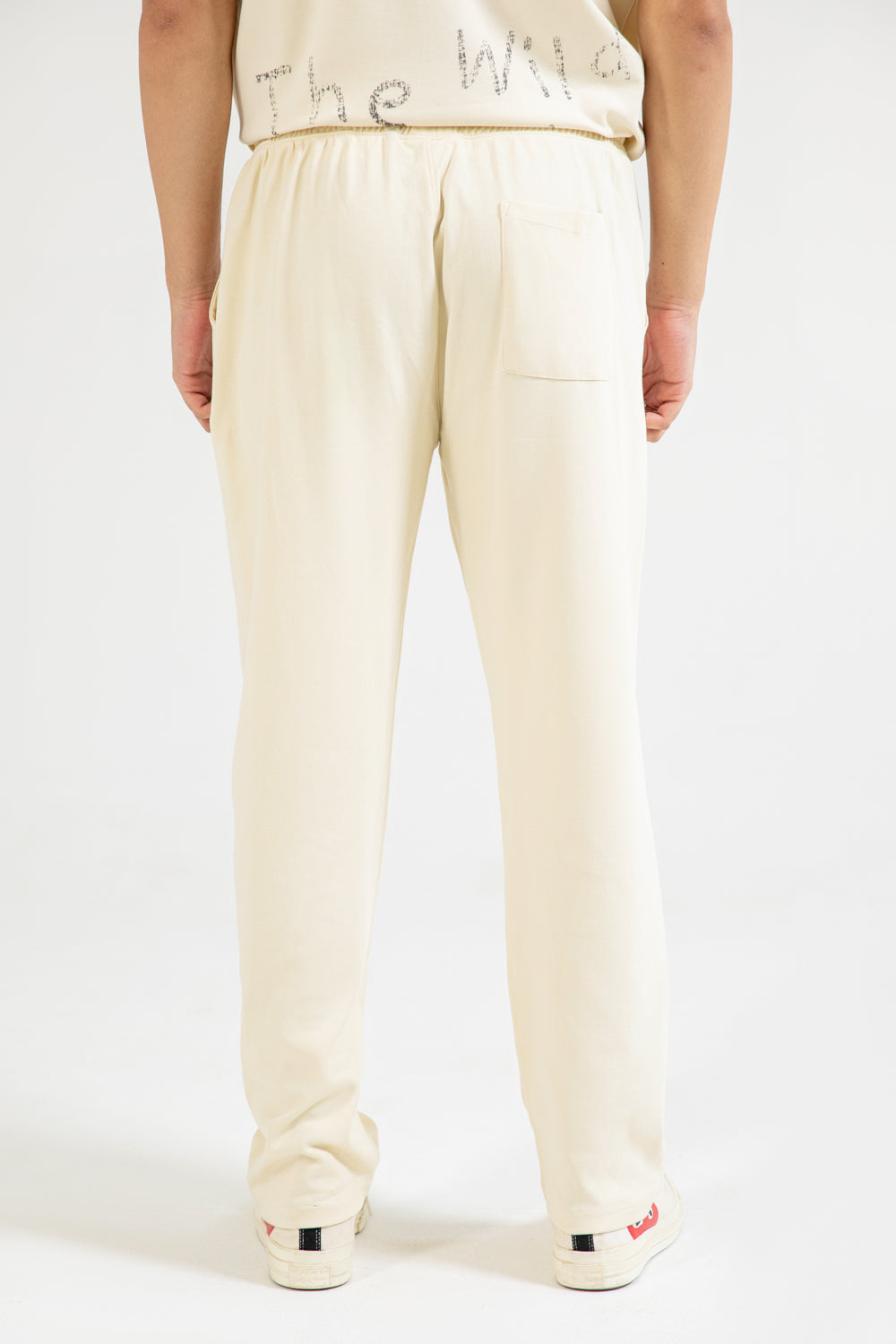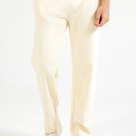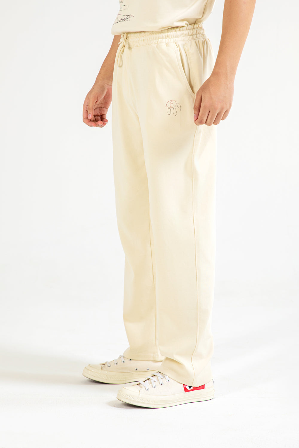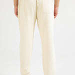 Beige baggy trousers in cotton with a drawstring waist and a single back pocket for a casual style.