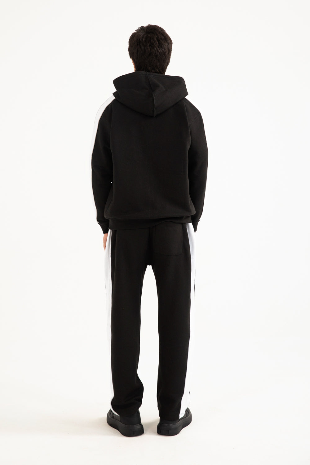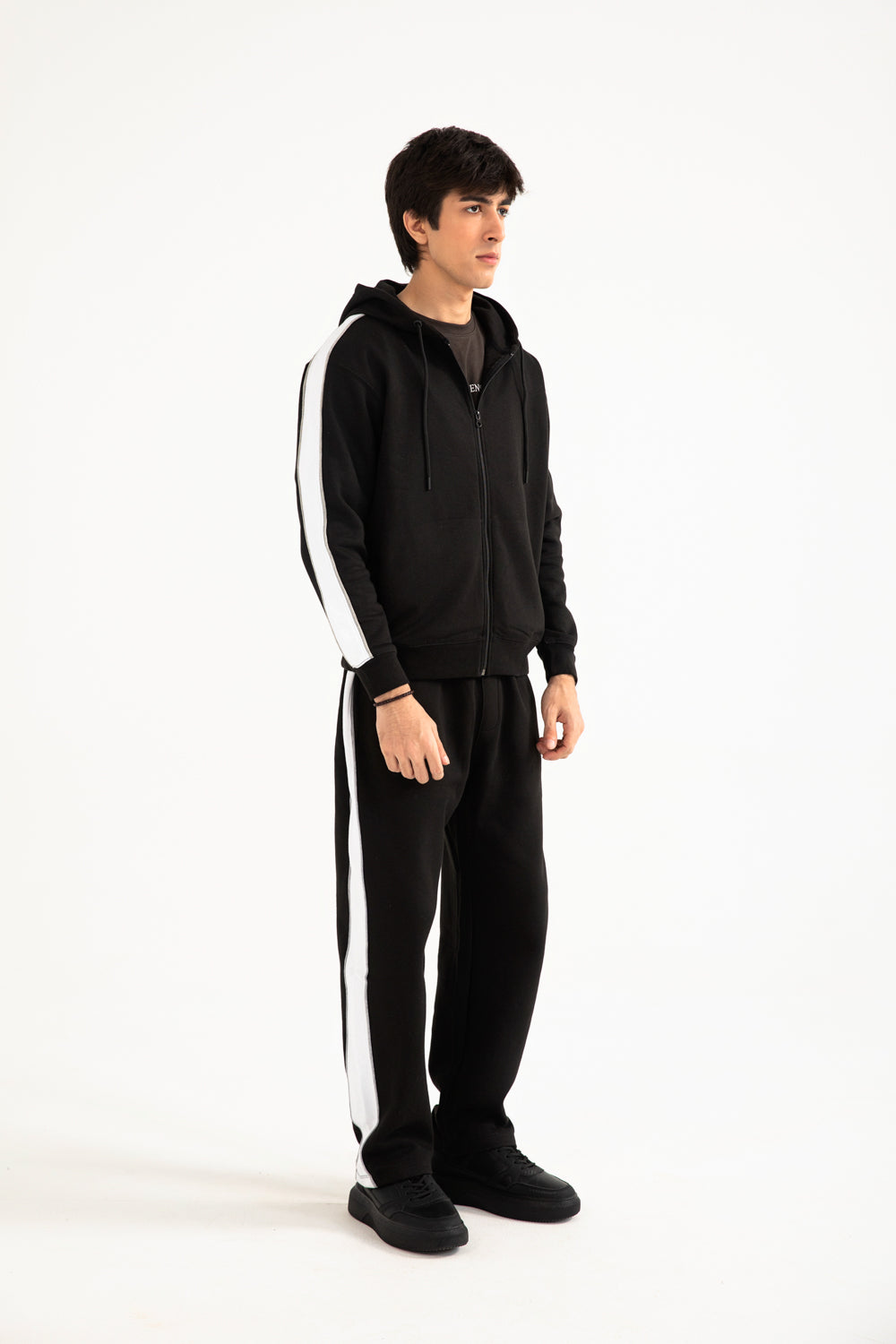 A baggy fit zipper hoodie in black, designed in a cotton blend with contrast panels down the sleeves.