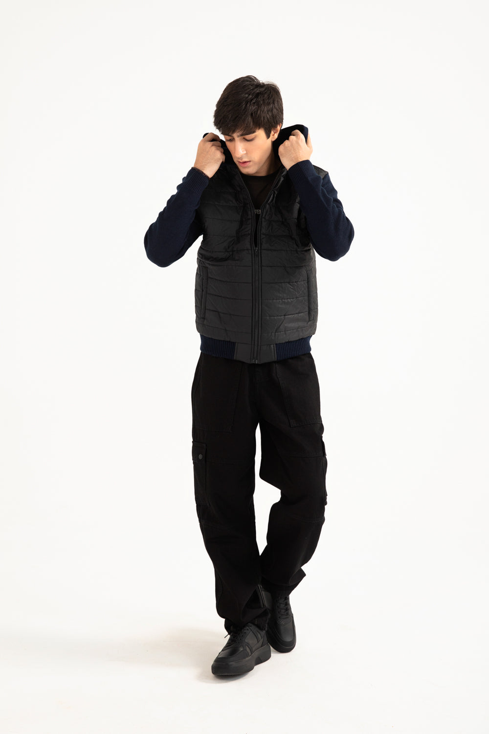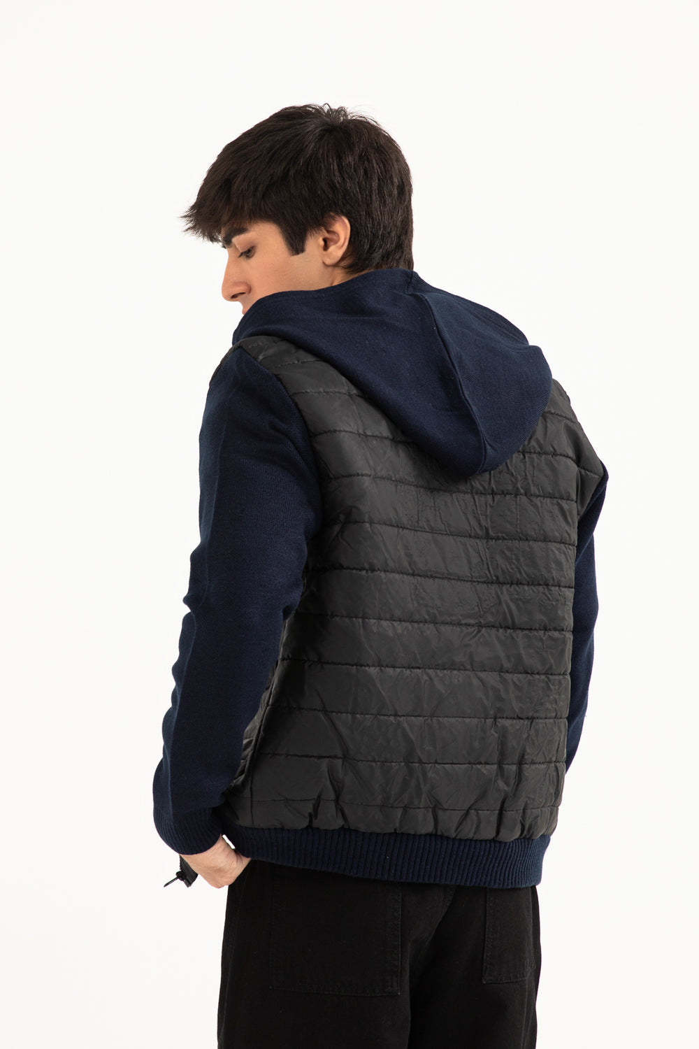 QUILTED CONTRAST SLEEVE HOODED JACKET