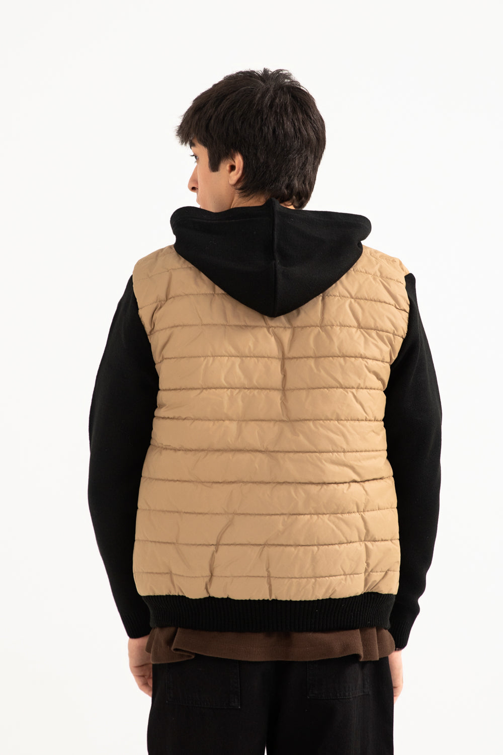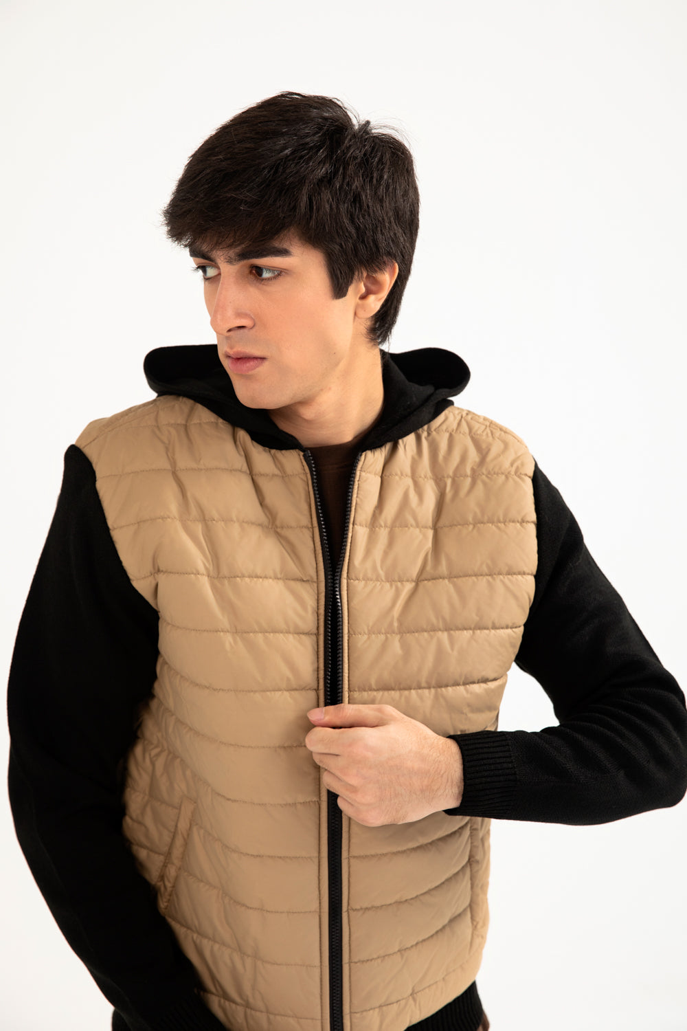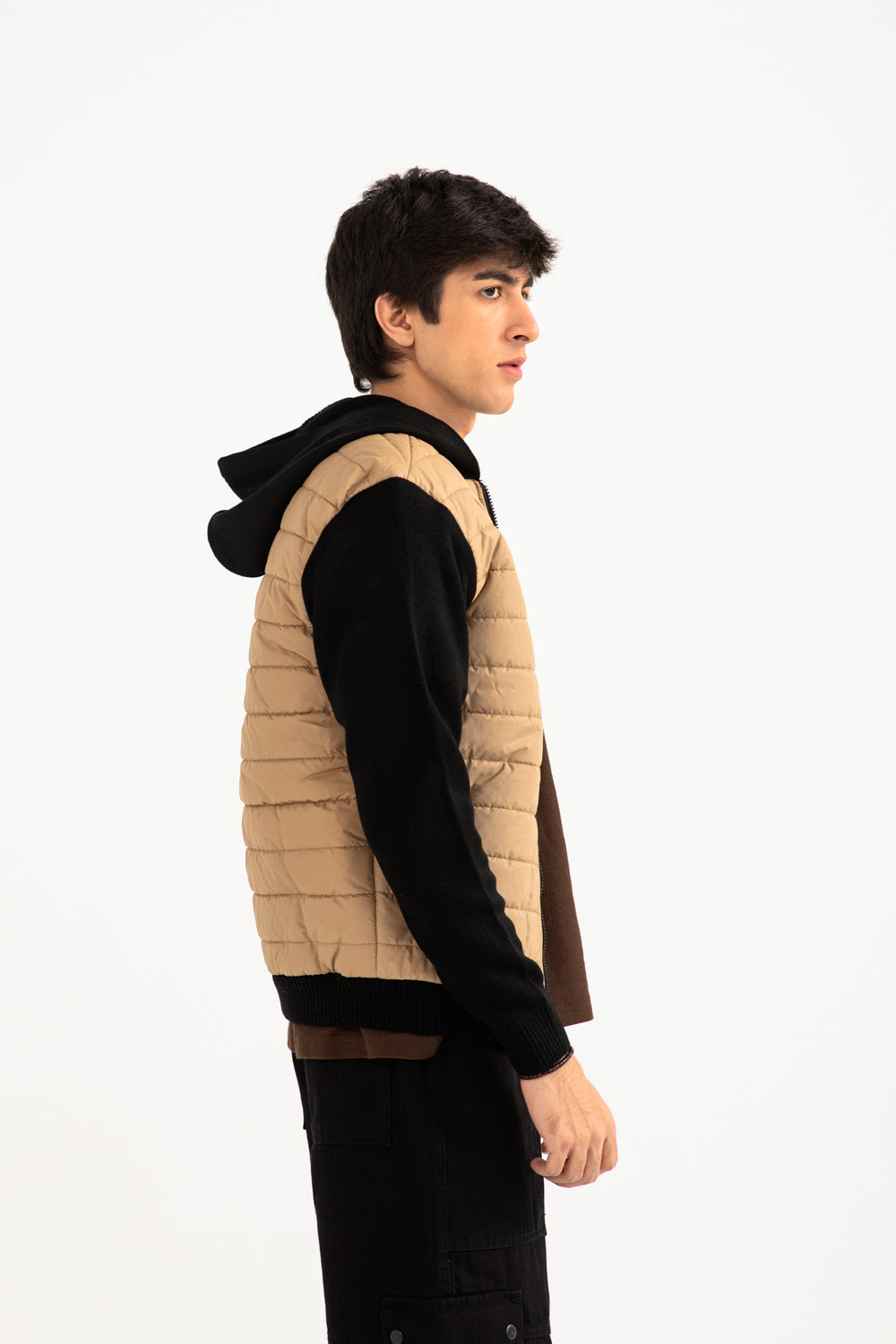 QUILTED CONTRAST SLEEVE HOODED JACKET