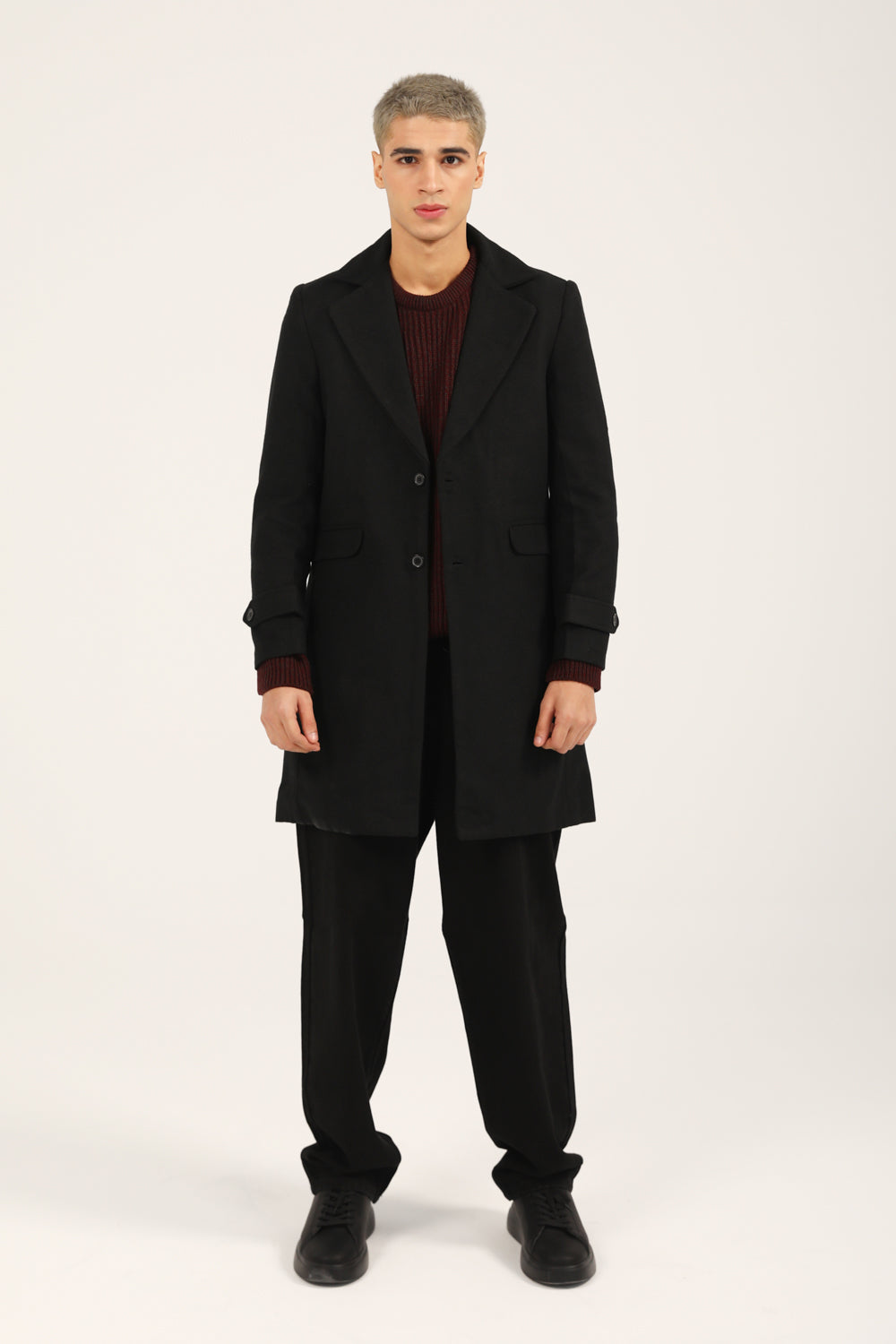 TEXTURED WOOL BLEND LONG COAT