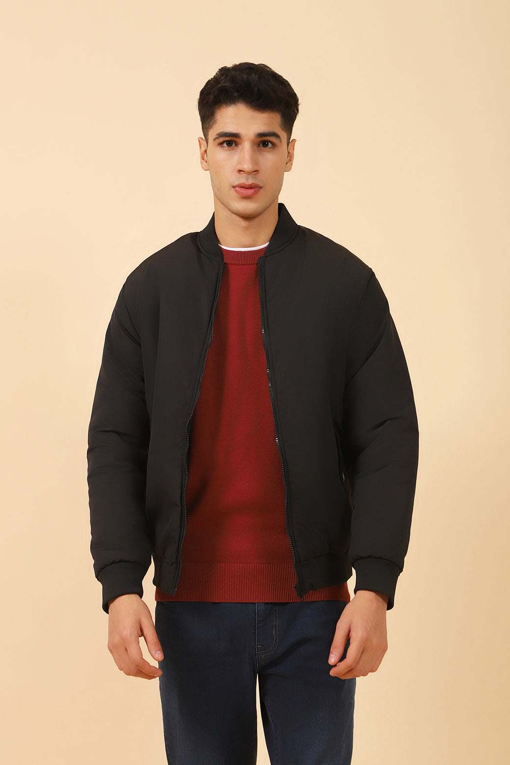 VARSITY COLLAR FAUX SUEDE LEATHER JACKET