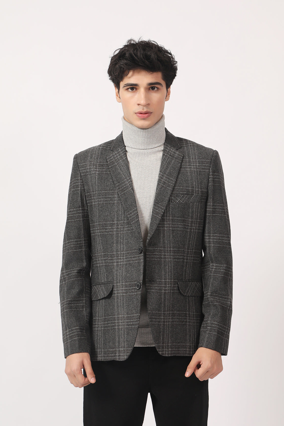 TEXTURED WOOL BLEND SEMI LONG COAT