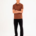 Super soft polo in brown, crafted from a synthetic blend with matching buttons.