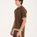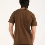 A brown cotton polo with a super soft feel, finished with matching buttons and contrasting trims on the collar and hem for a polished touch.