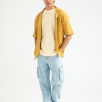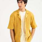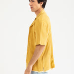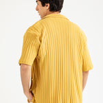 Crafted from cotton with a textured finish, this mustard polo features a relaxed baggy fit, a laid back resort collar, and matching buttons for a clean and coordinated look.