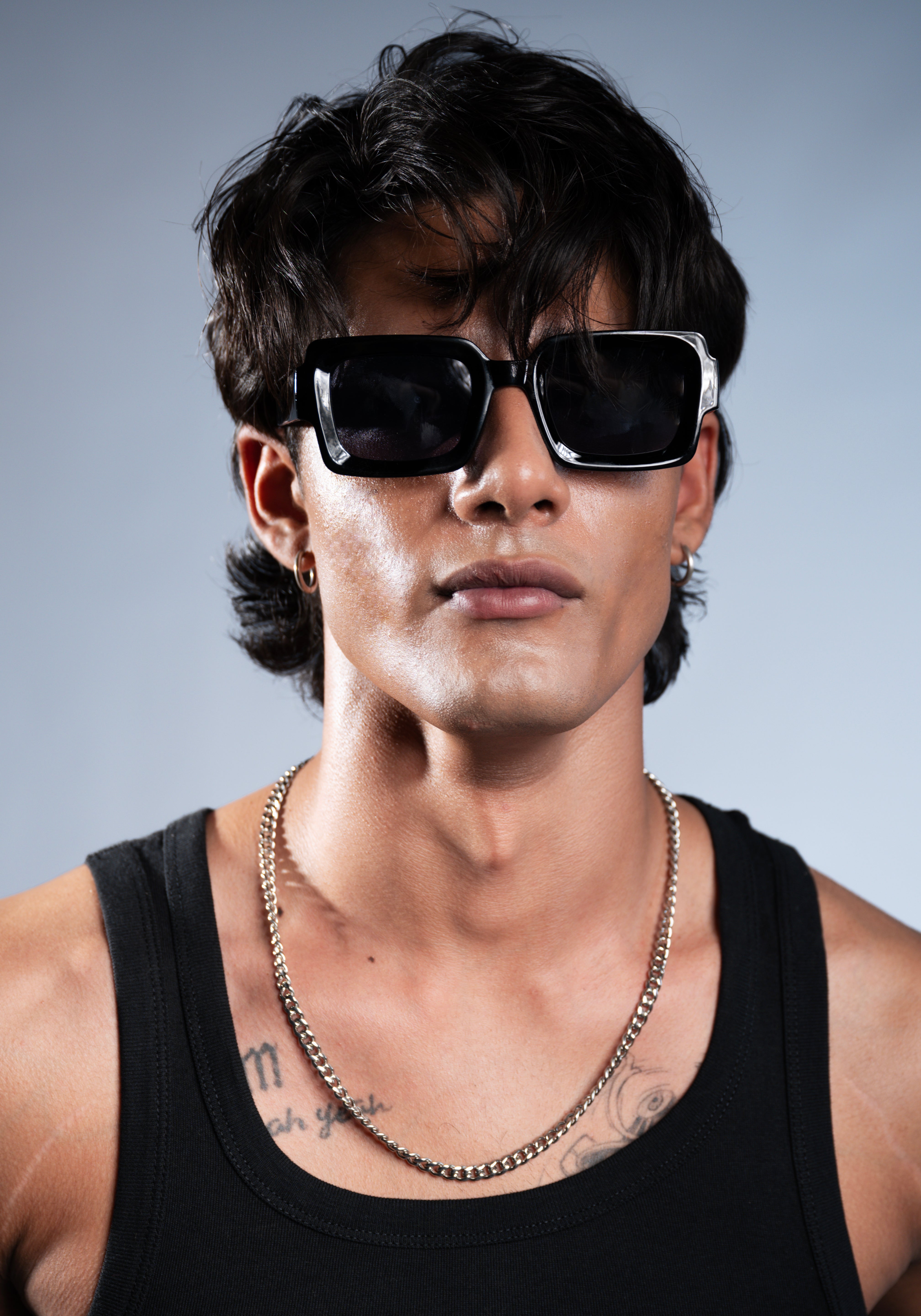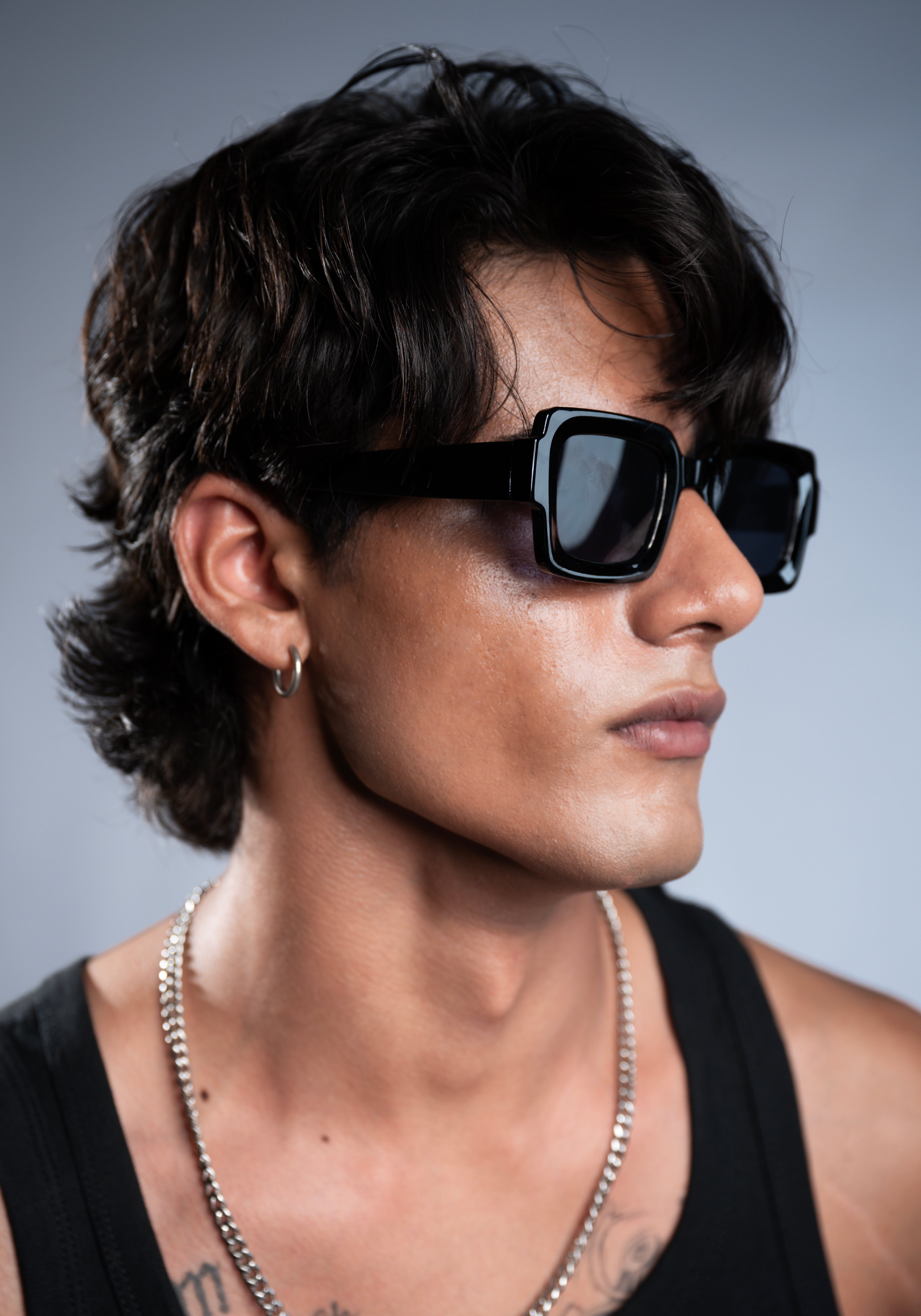 Clash square sunglasses in black, featuring a bold frame with sleek lines and dark lenses for a statement-making look.
