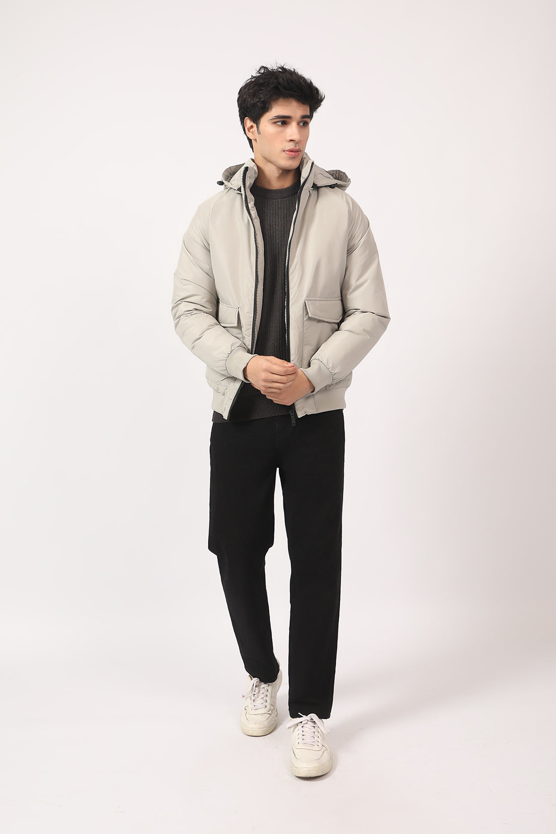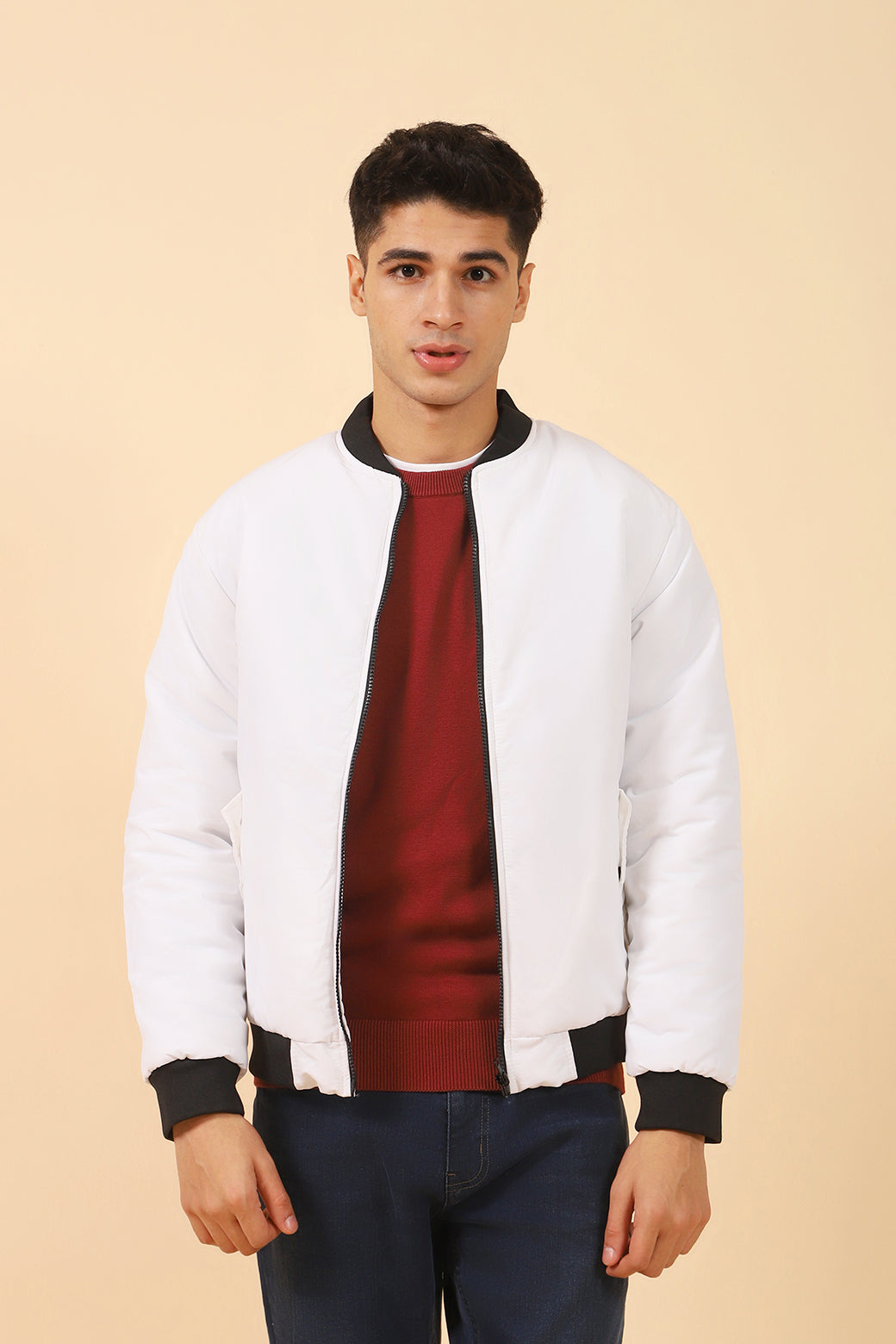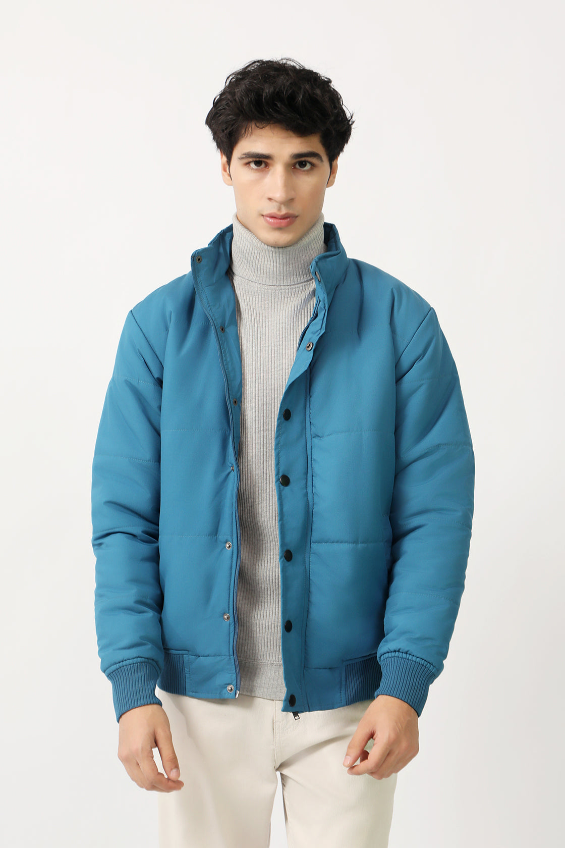 MOCK NECK CONTRAST SLEEVE QUILTED JACKET