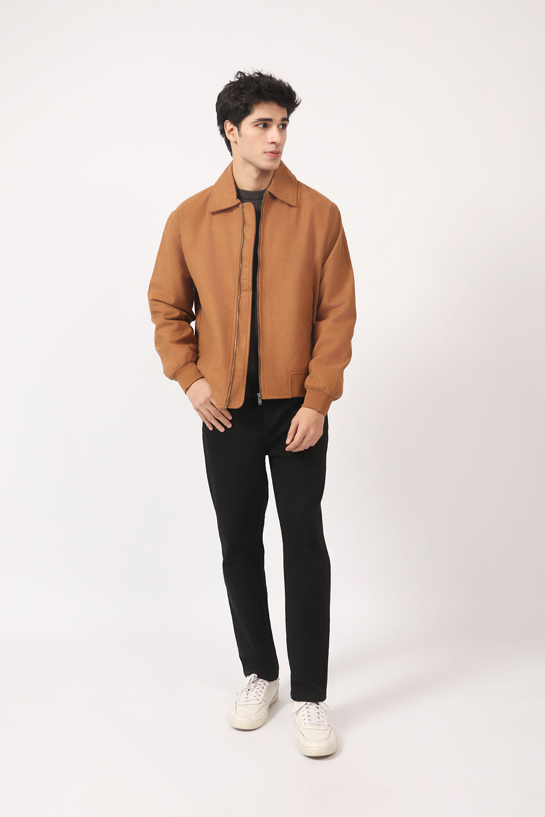 VARSITY COLLAR FAUX SUEDE LEATHER JACKET