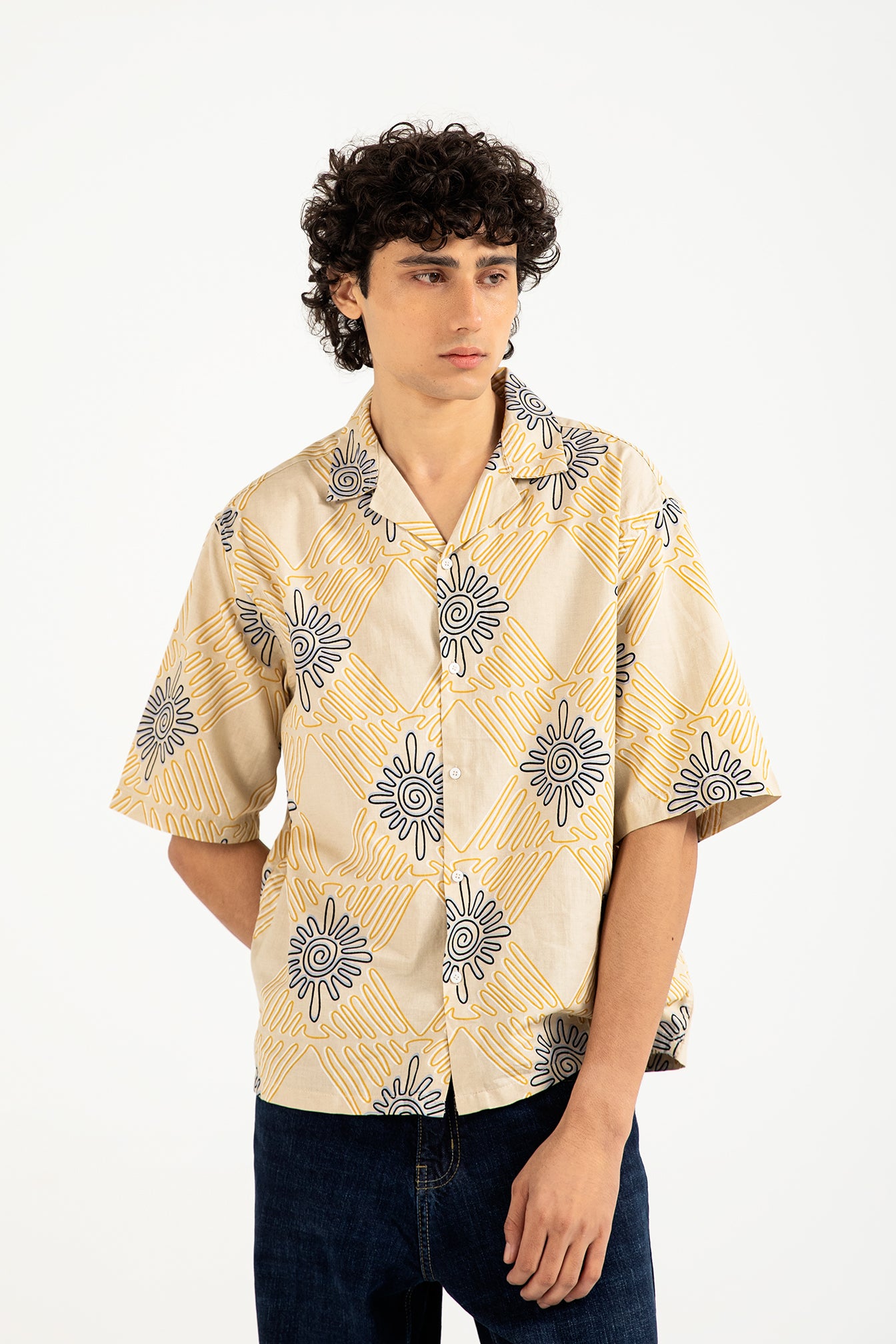 BAGGY FIT PRINTED RESORT COLLAR SHIRT