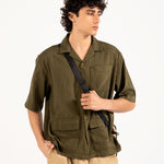 BAGGY FIT TEXTURED RESORT COLLAR SHIRT