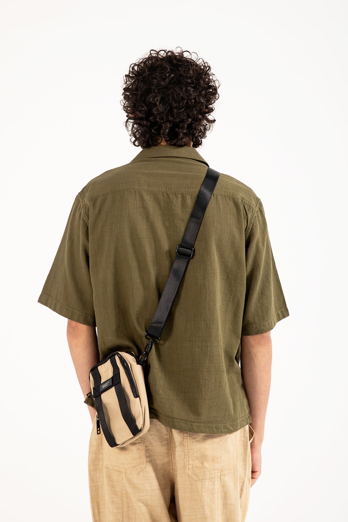 Cotton shirt with a textured finish, designed in a baggy fit featuring a resort collar, tonal buttons, a chest pocket, and two spacious lower-front pockets.