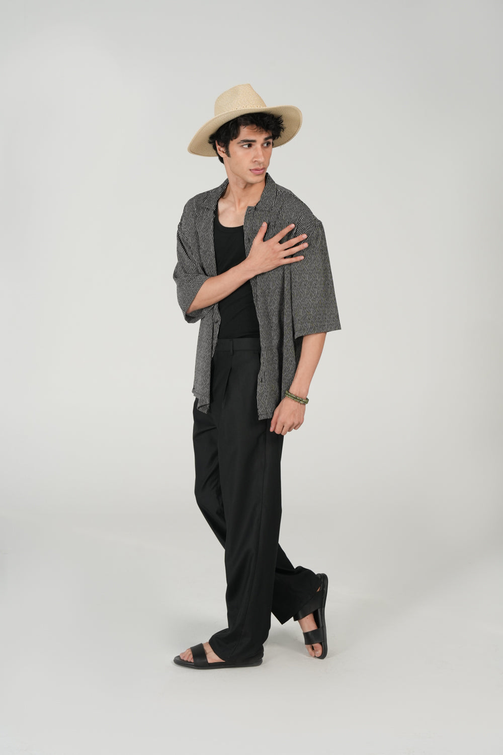 BAGGY FIT TEXTURED STRIPED SHIRT