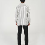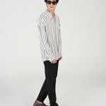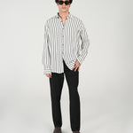 Vertical striped shirt in crisp monochrome with a contemporary silhouette.