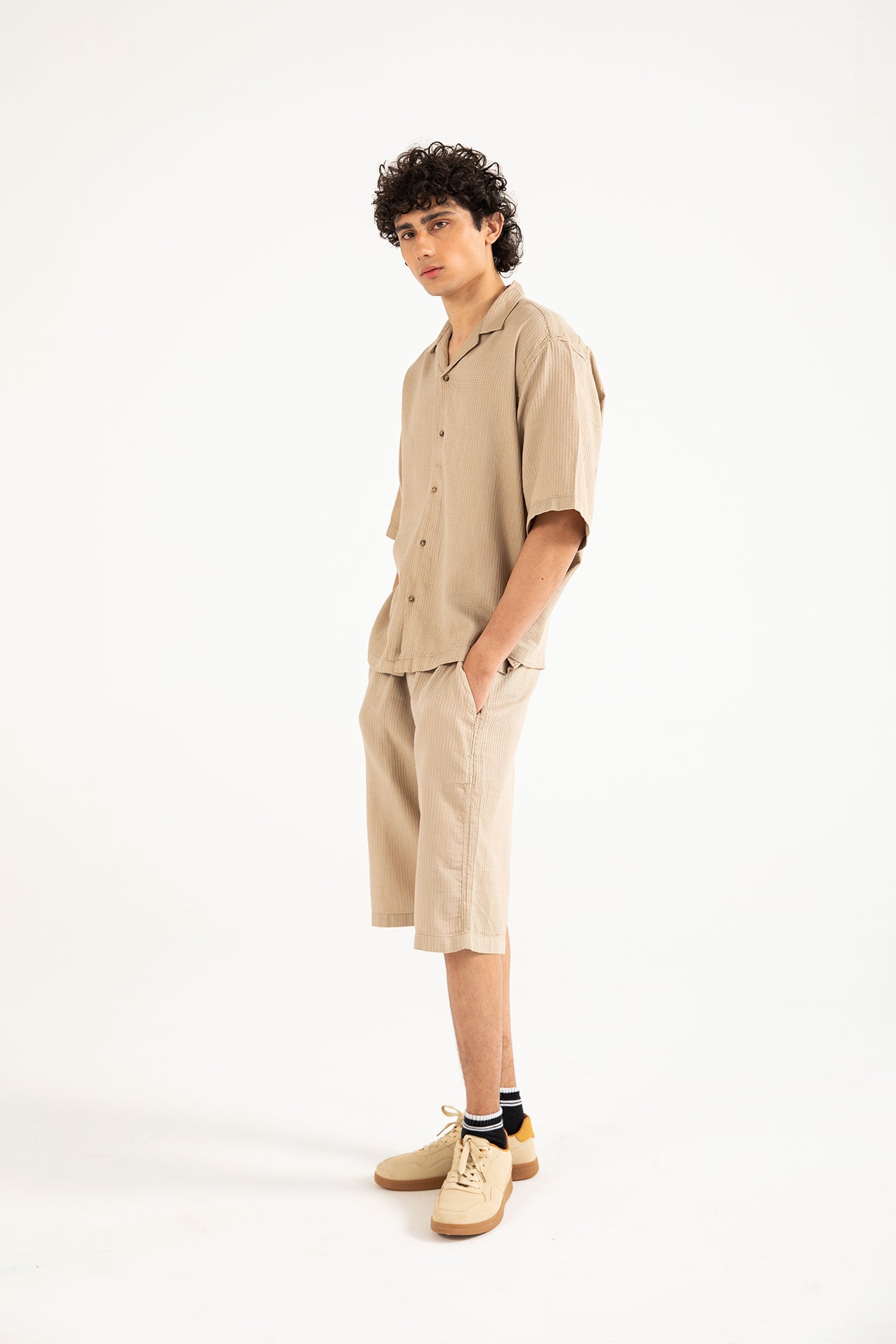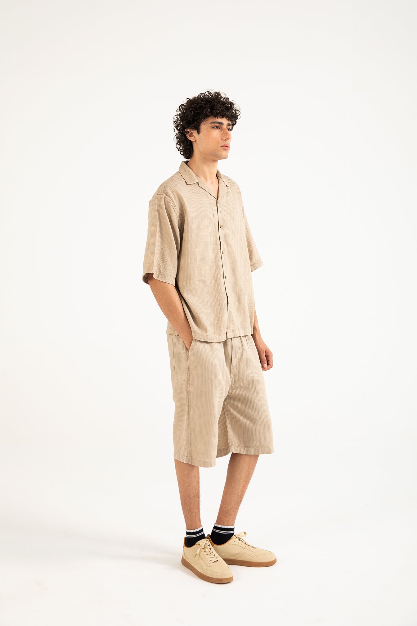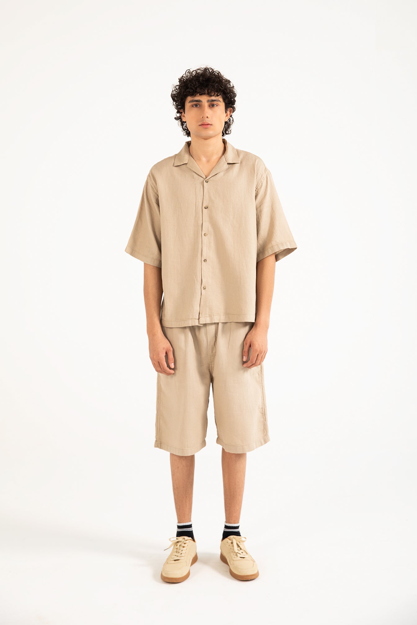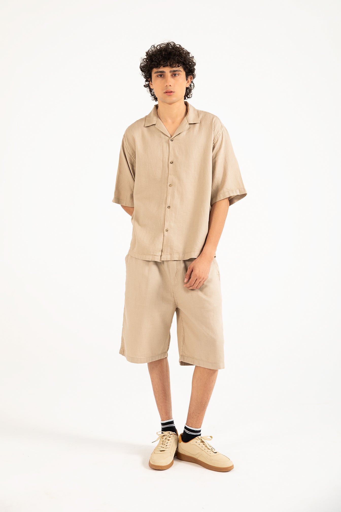 BAGGY FIT TEXTURED RESORT COLLAR SHIRT