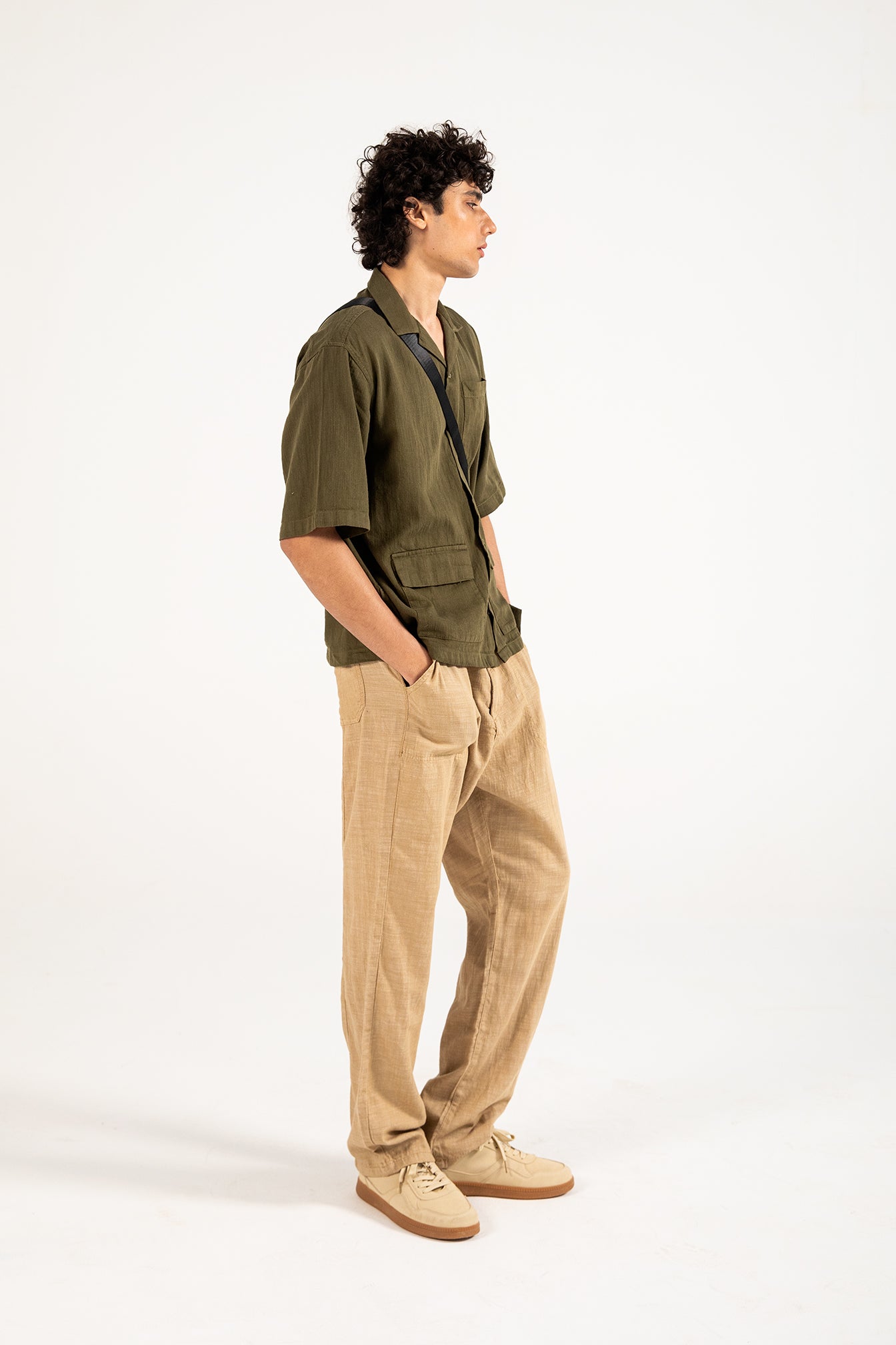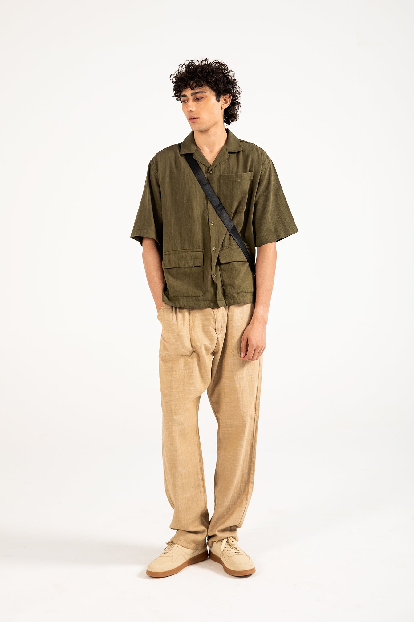 BAGGY FIT TEXTURED RESORT COLLAR SHIRT