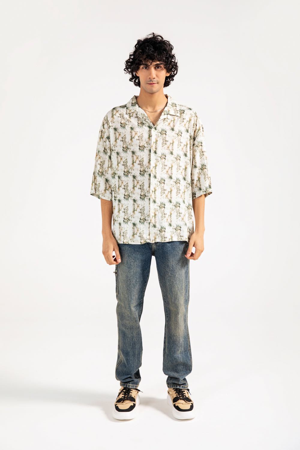 RESORT COLLAR PRINTED BOXY FIT SHIRT