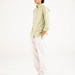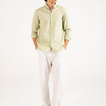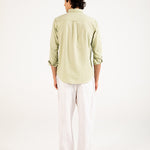 Pastel green cotton Oxford shirt finished with classic white buttons.