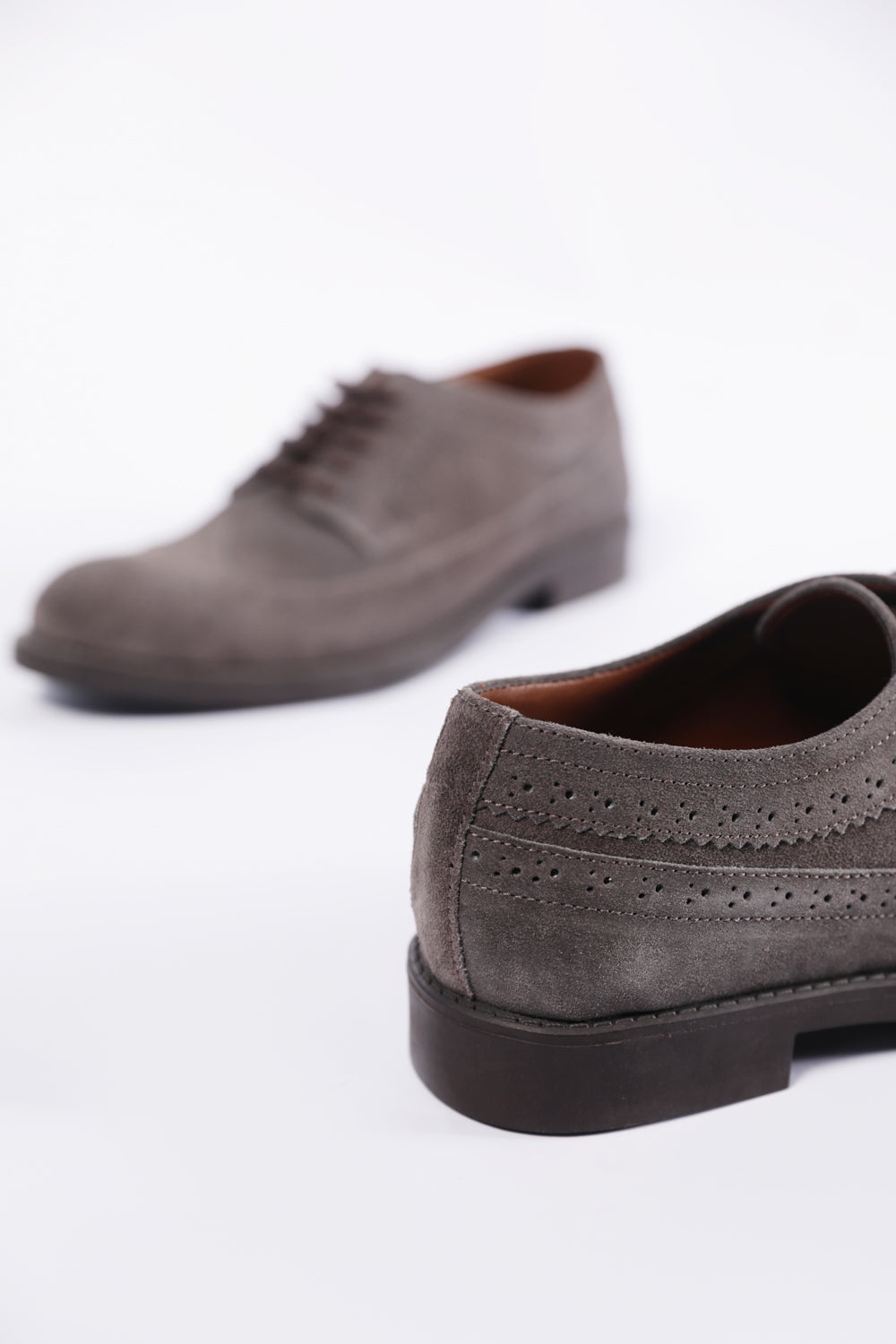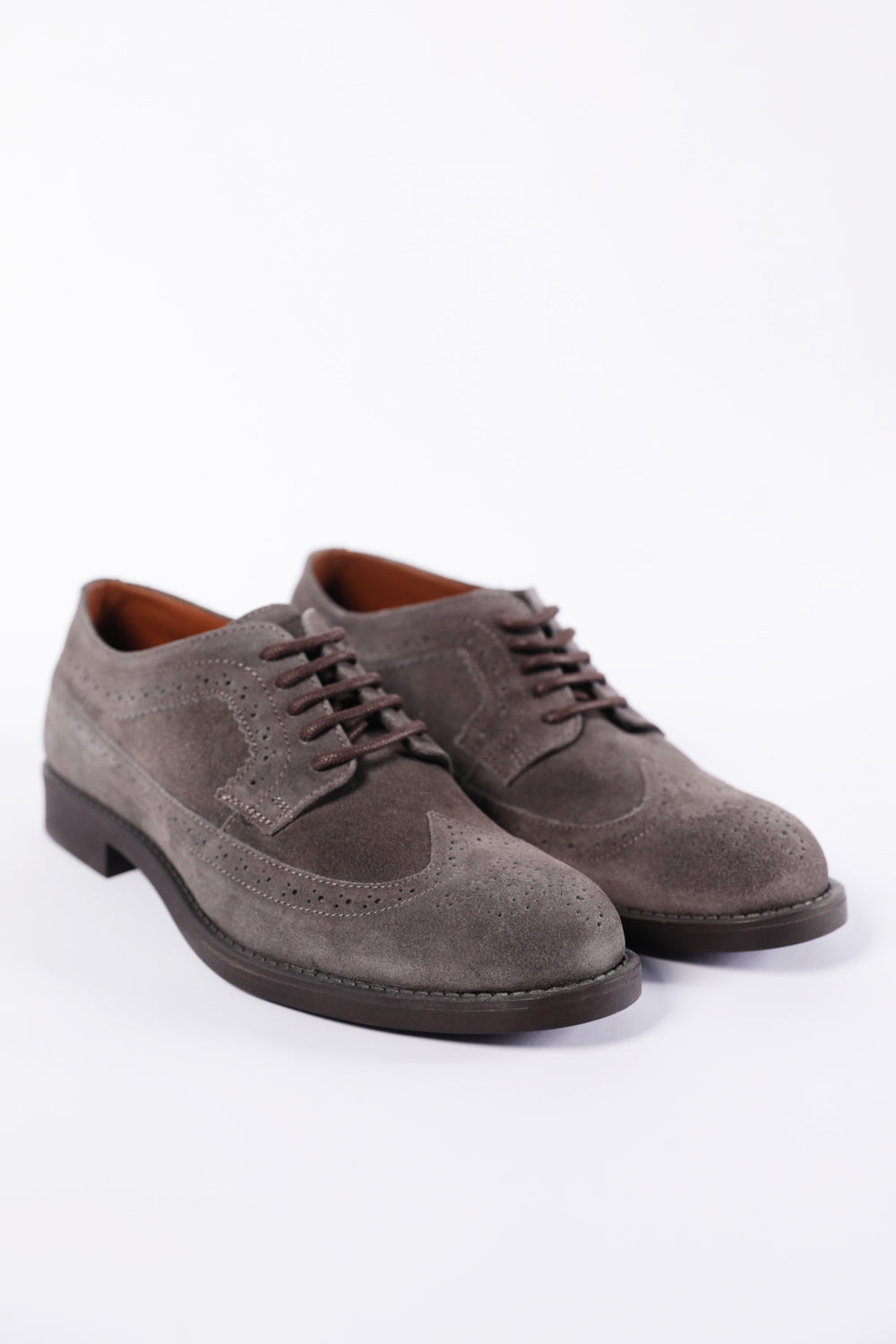 A timeless classic with a modern edge. These brown suede leather dress shoes feature perfectly matching laces for a seamless, polished look.