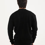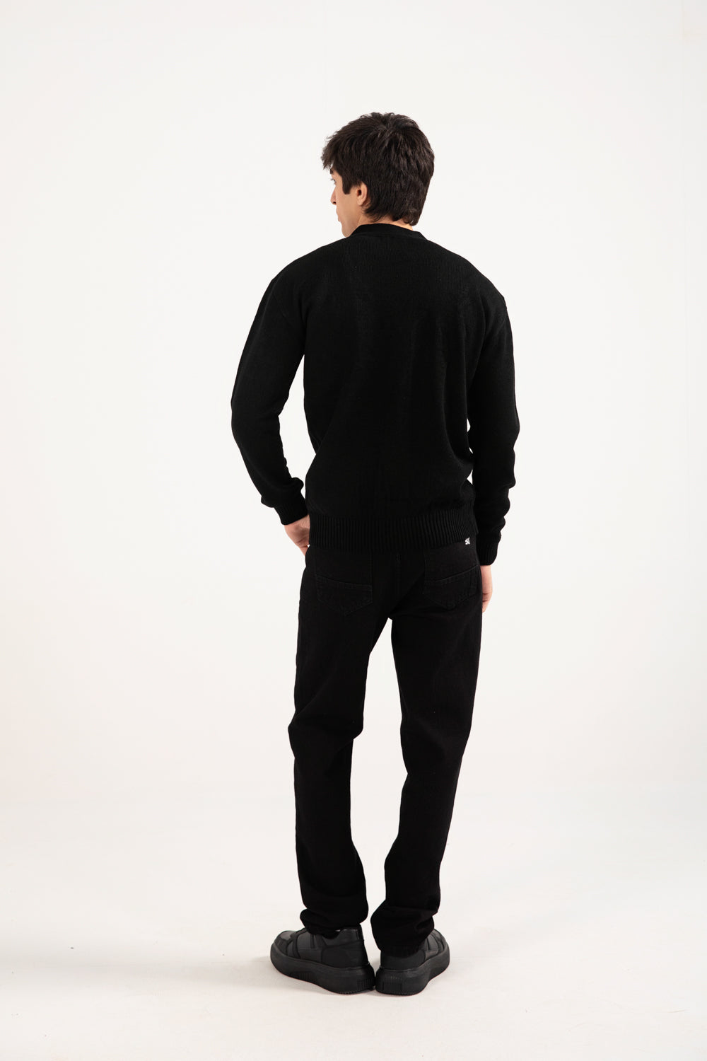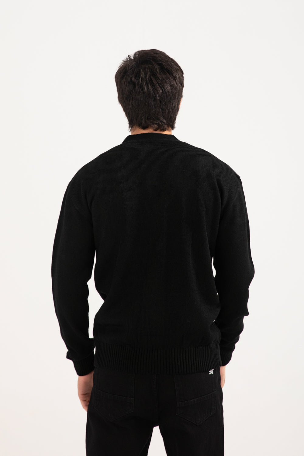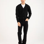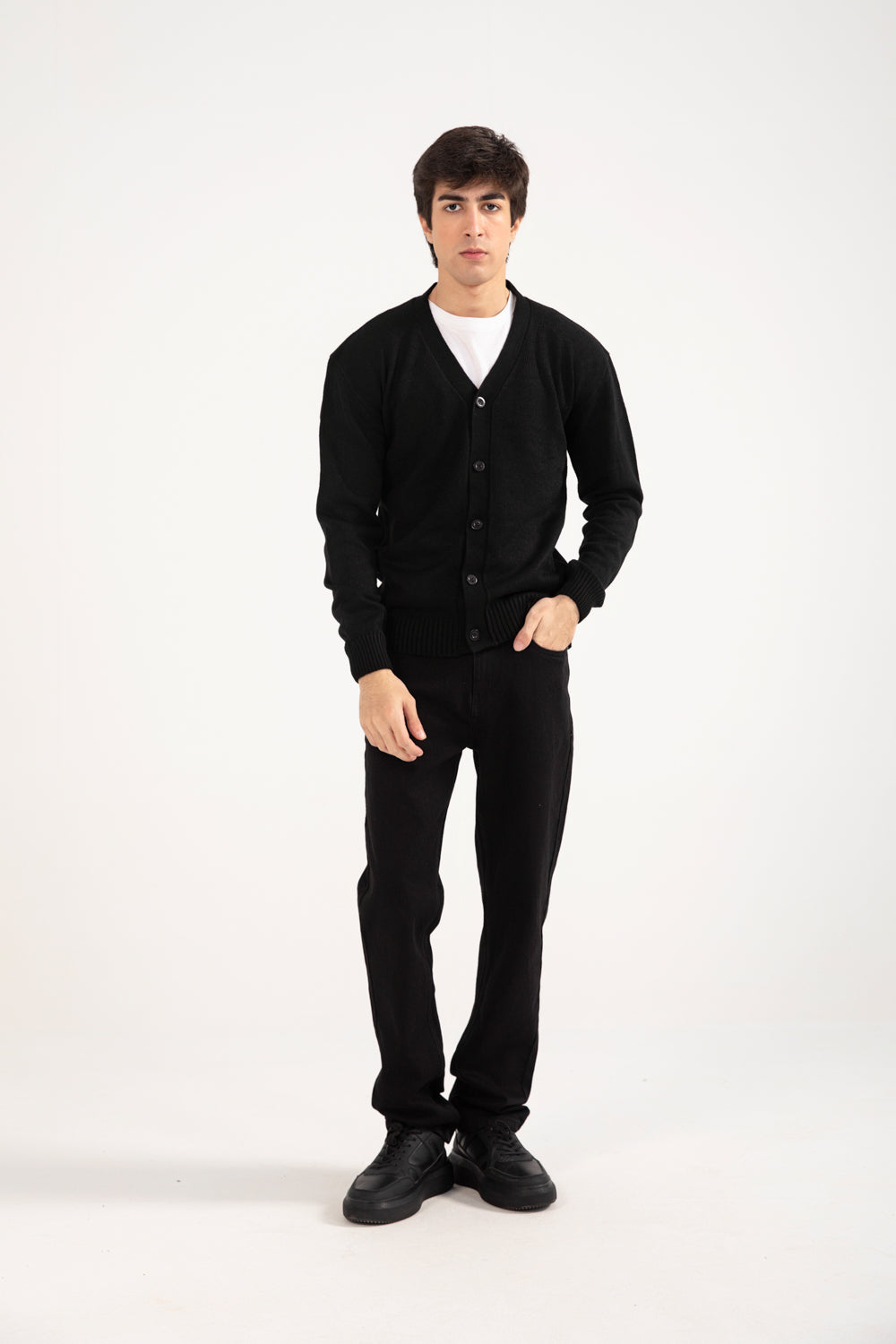 A black relaxed fit cardigan sweater with a soft shape and a versatile layered look.
