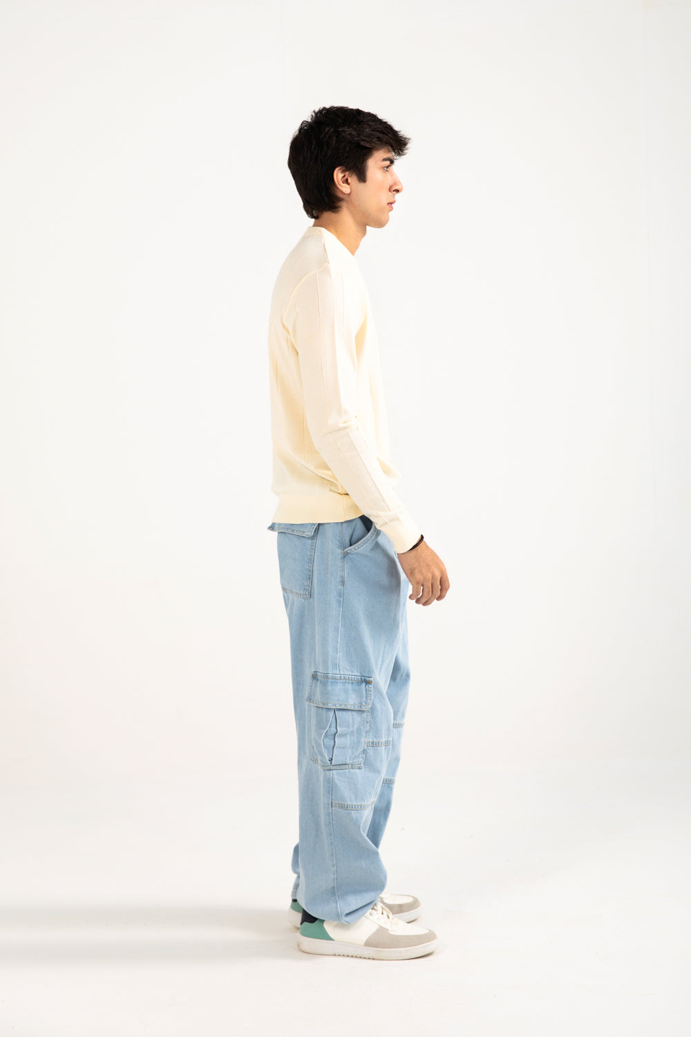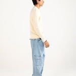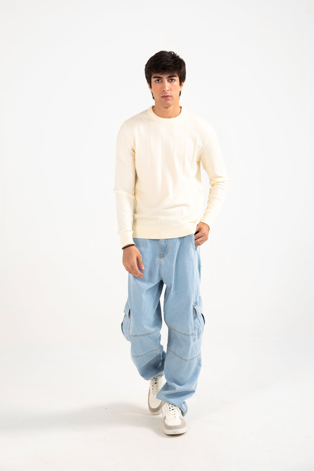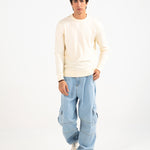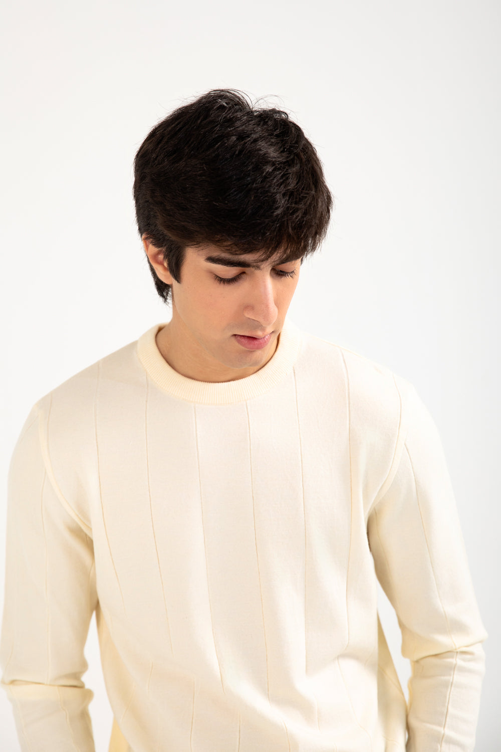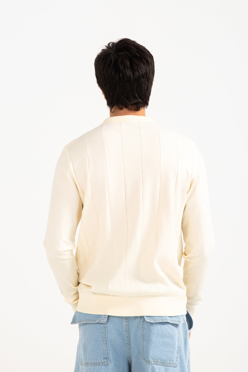 Off-white crew neck sweater with a defined fit and full length sleeves.